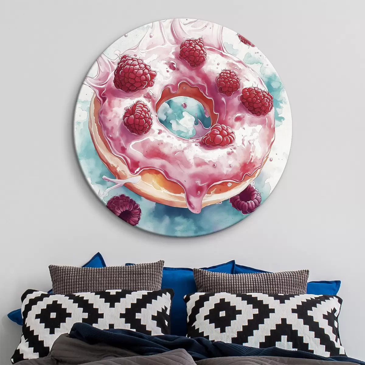 Quadri rotondi Ciambella acquerellata con lamponi, colori rosa e blu r42787