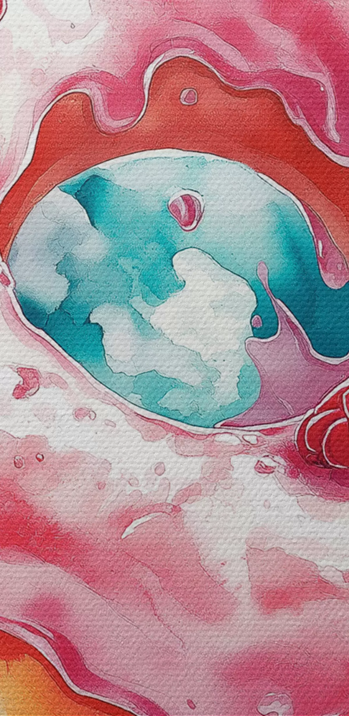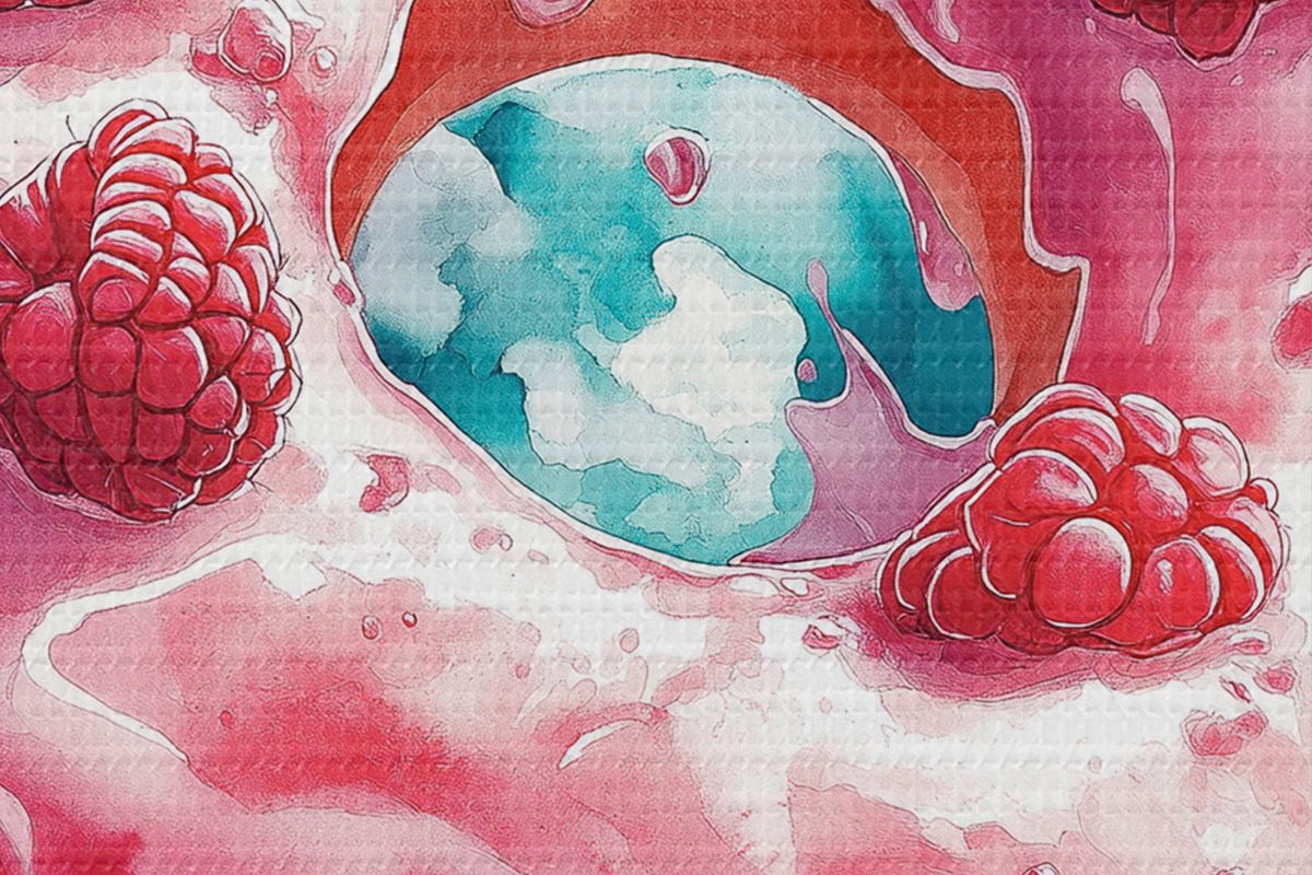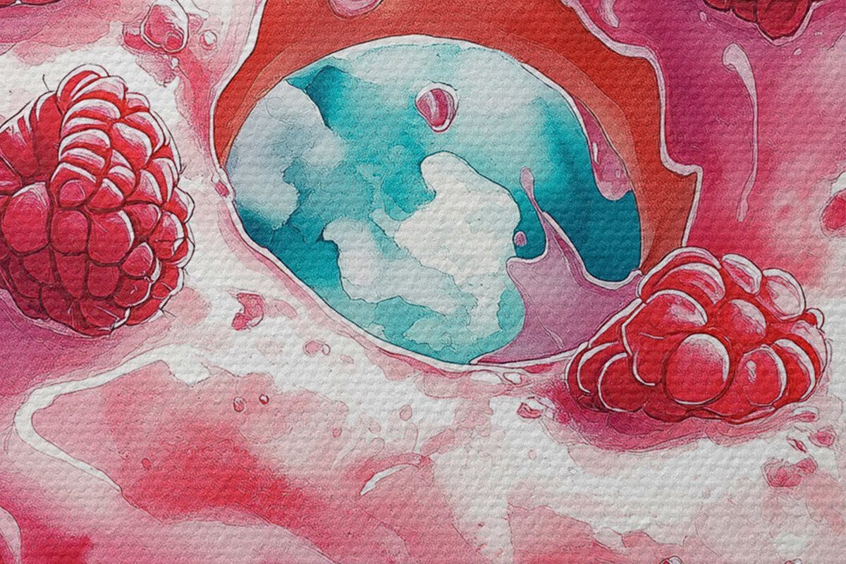 Immagine Ciambella acquerellata con lamponi, colori rosa e blu Nr r42787