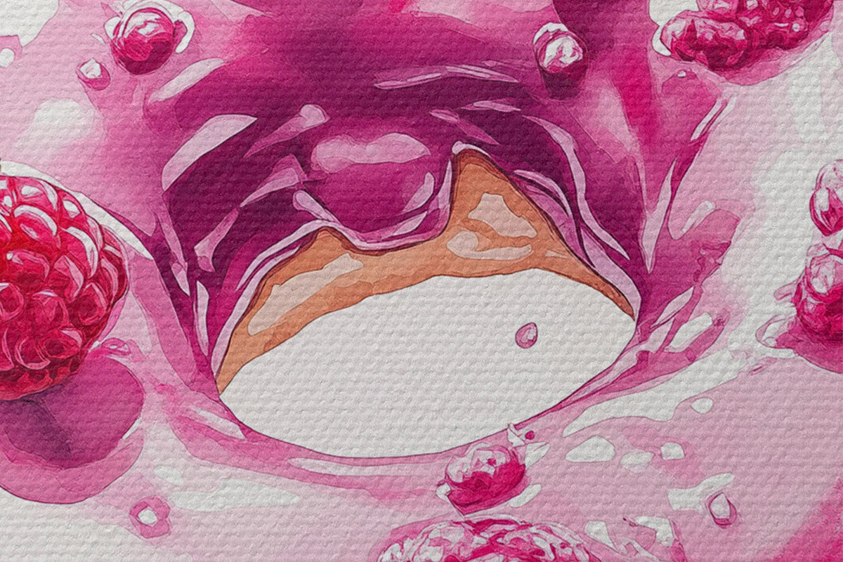 Immagine Ciambella con lamponi con glassa rosa, delizioso dessert, stile acquerello Nr r42789