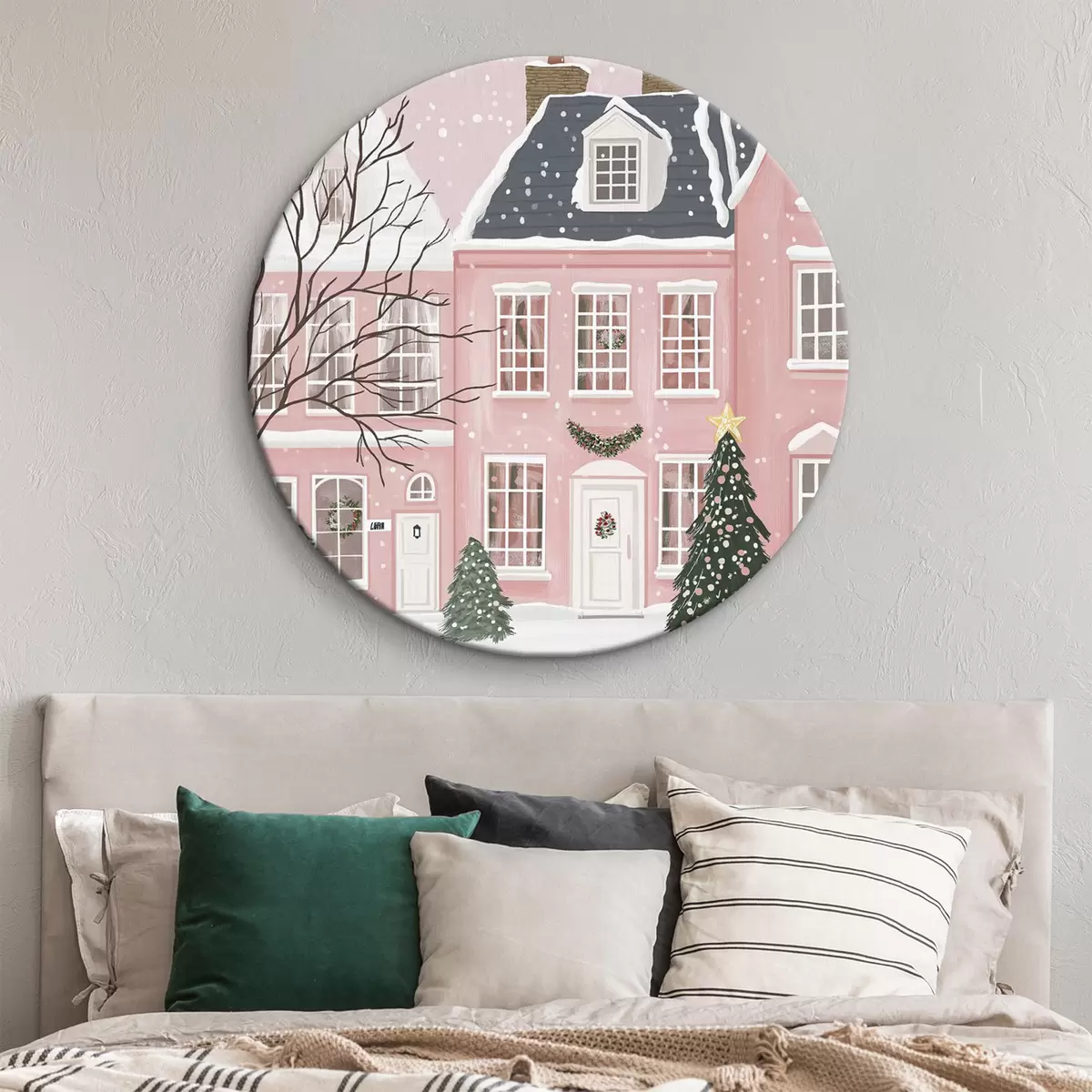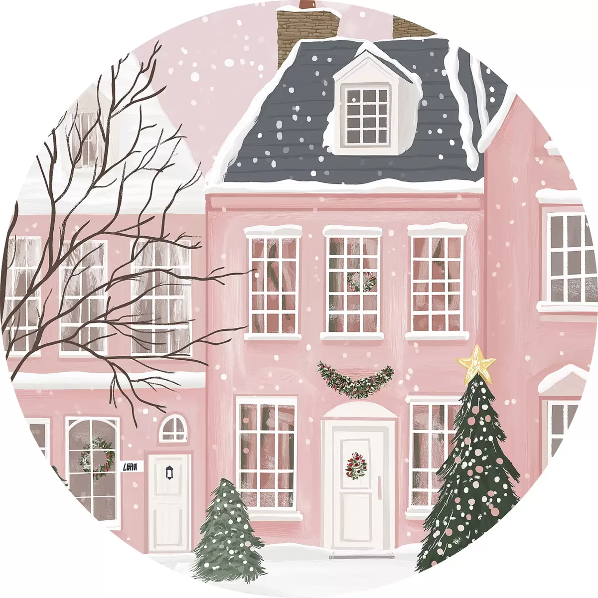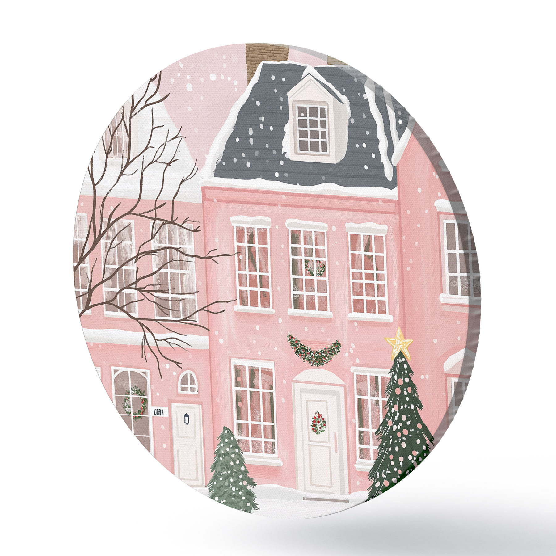 Quadri rotondi Case rosa, pini, paesaggi invernali r42791