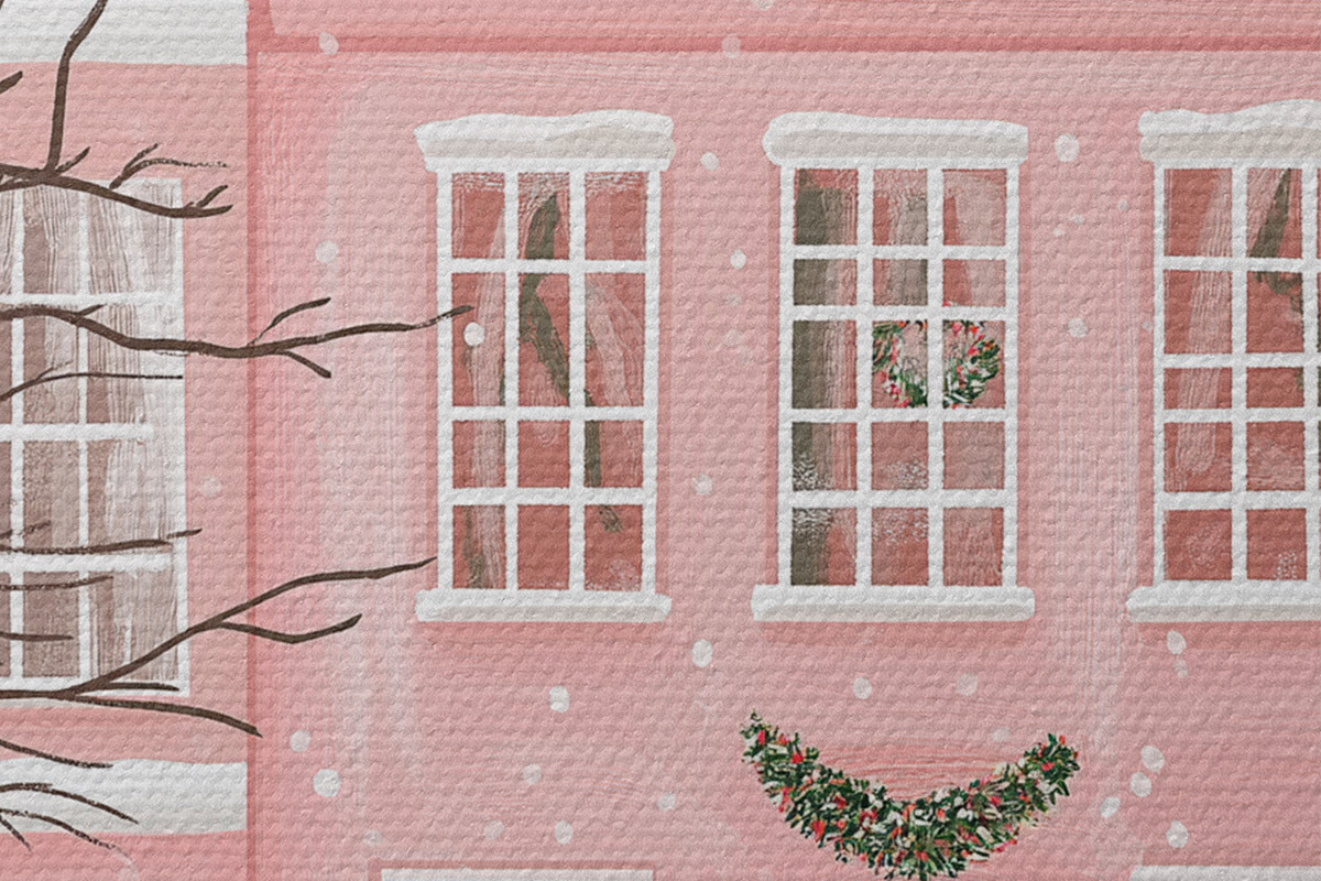 Immagine Case rosa, pini, paesaggi invernali Nr r42791