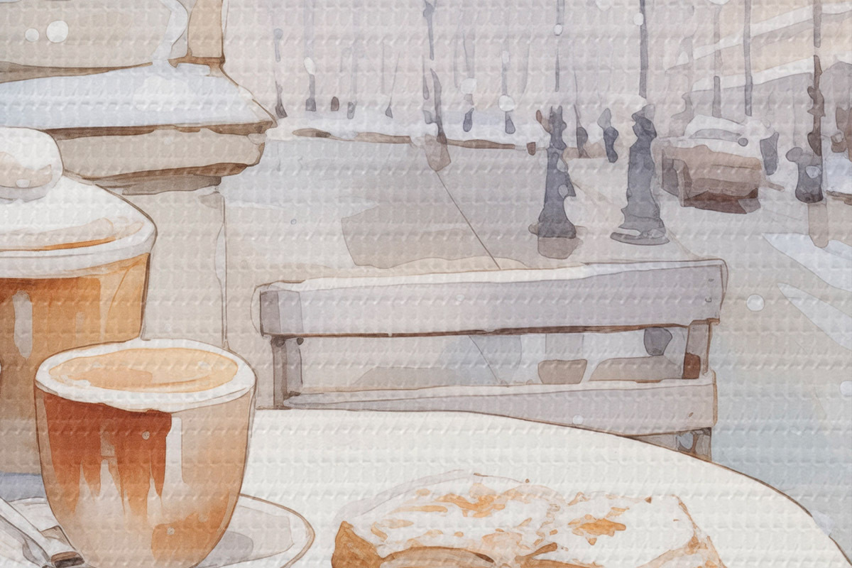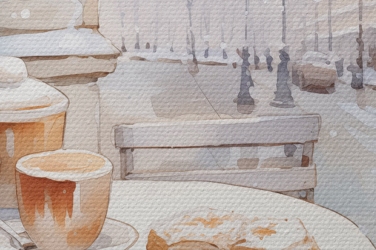 Immagine Caffè di strada estetico, Francia, panetteria fresca, disegno in stile acquerello Nr r42798