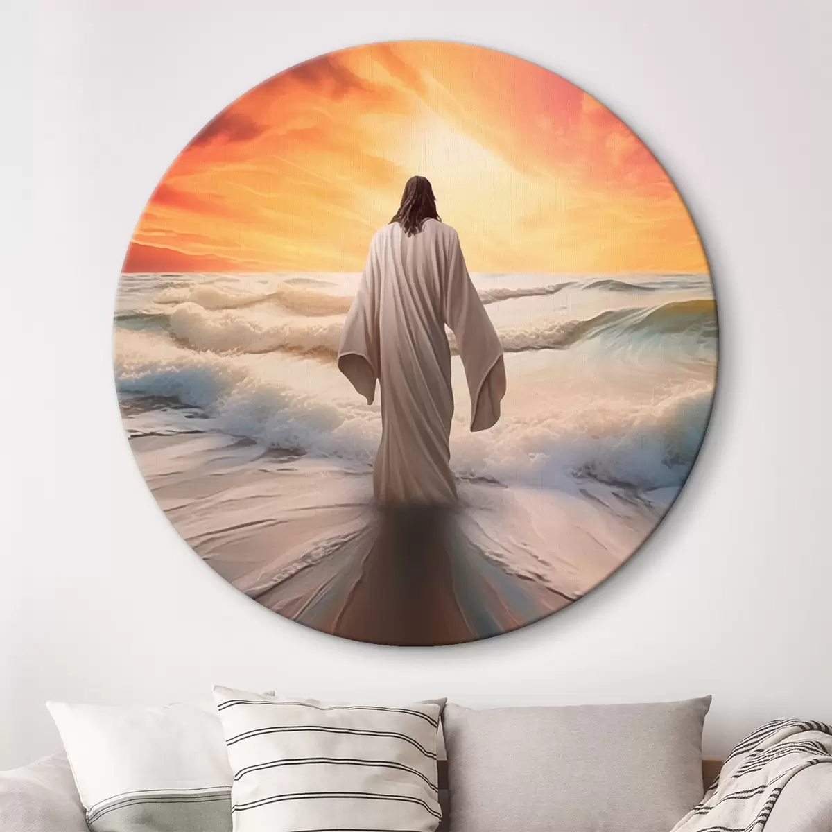 Quadri rotondi Uomo vicino all'acqua sullo sfondo del tramonto r42824