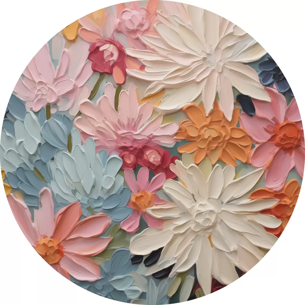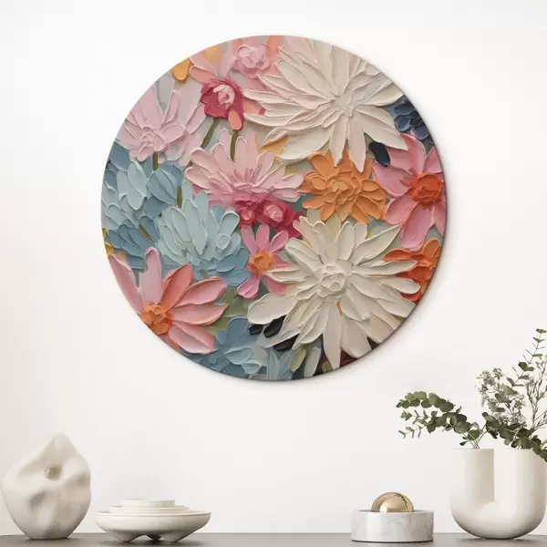 Quadri rotondi Fiori astratti luminosi che imitano le pennellate r42826