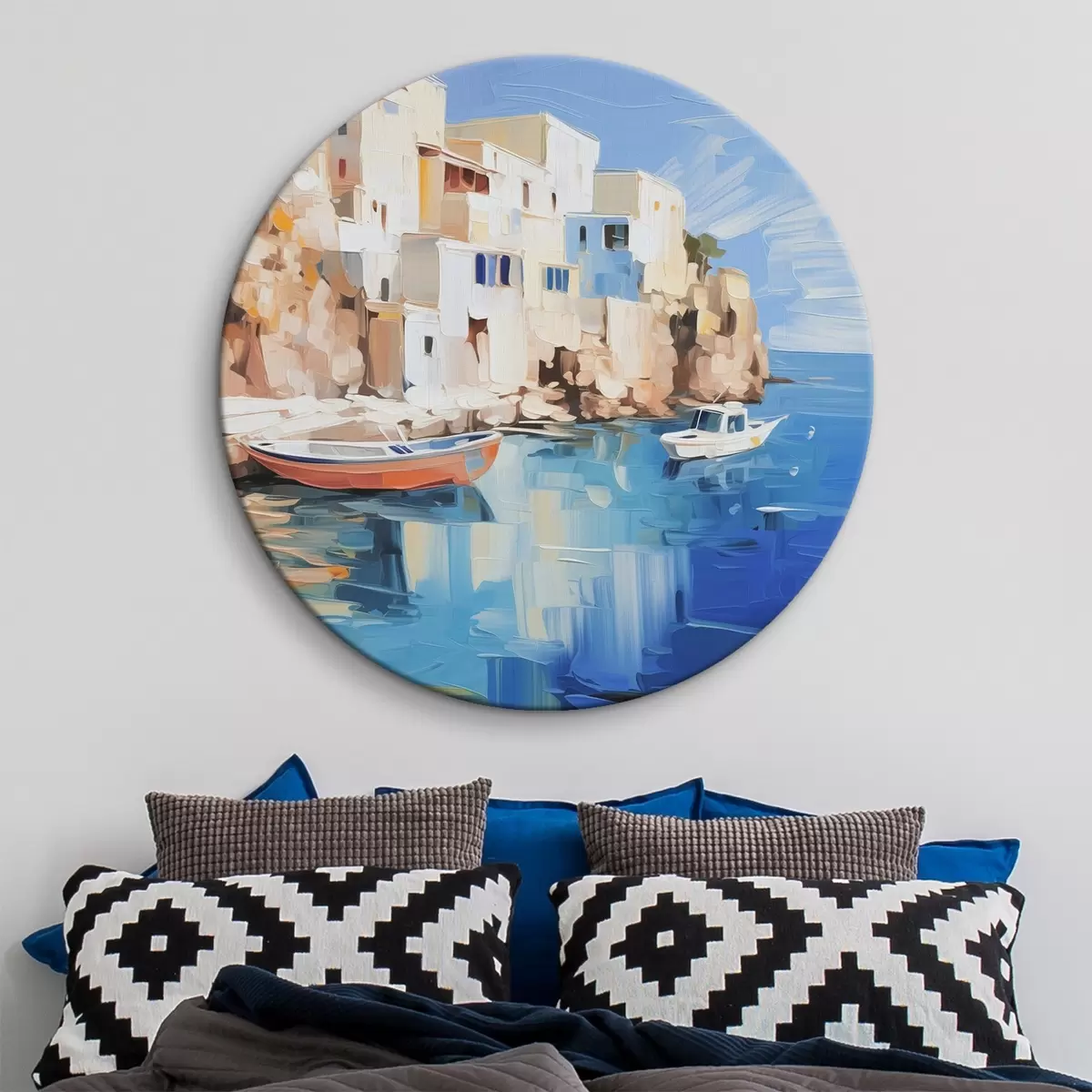 Quadri rotondi Case al mare imitazione della pittura r42830