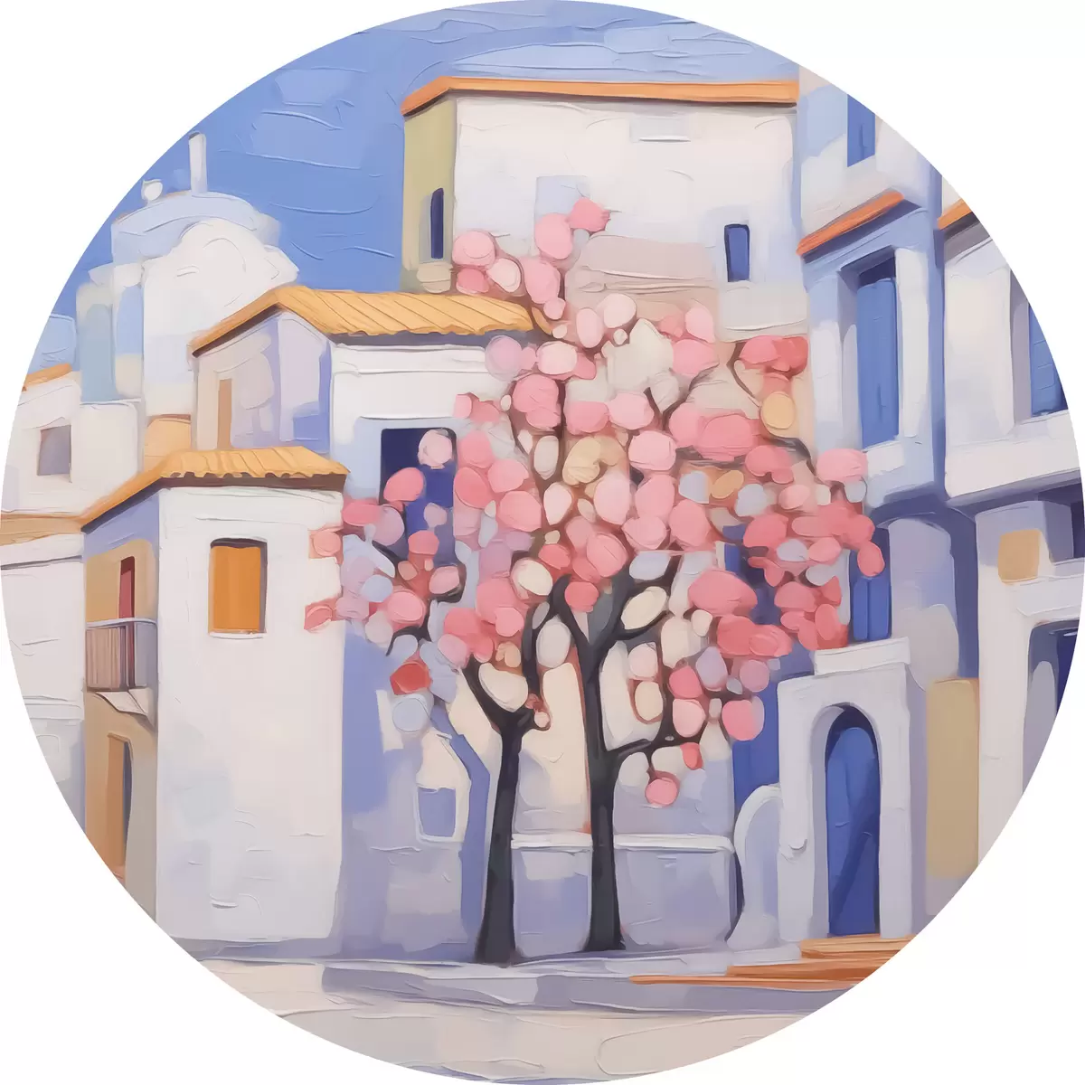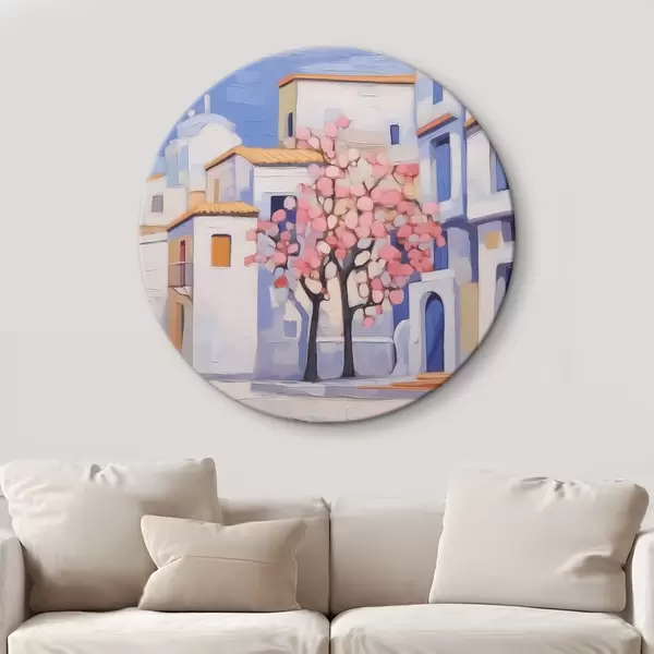 Quadri rotondi Imitazione di paesaggio urbano r42833