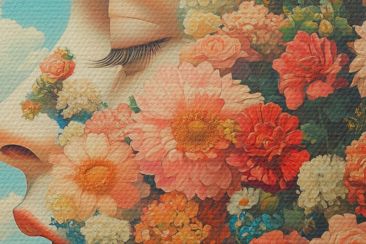 Immagine Volto di profilo tra i fiori Nr r42861