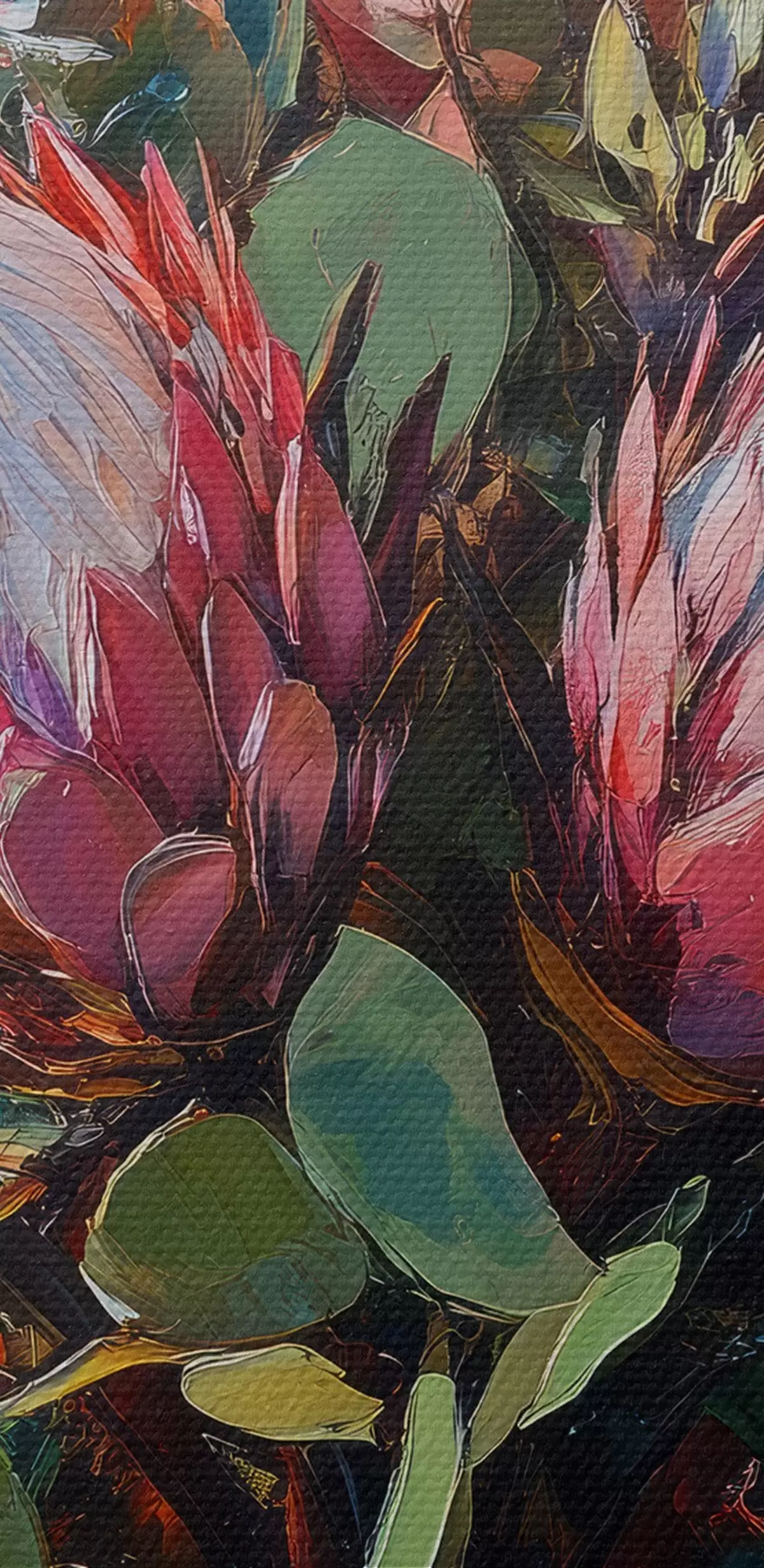 La verniciatura crea un ulteriore strato protettivo sulla tela. Il quadro sarà più resistente ai piccoli danni e per rinfrescarlo si può passare un panno morbido e leggermente umido.