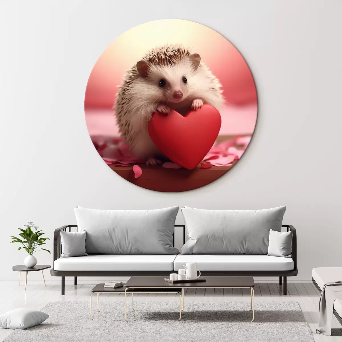 Quadri rotondi Piccolo riccio con un cuore in mano r42867