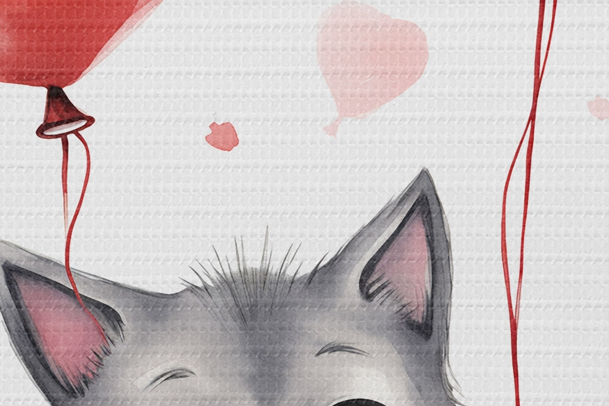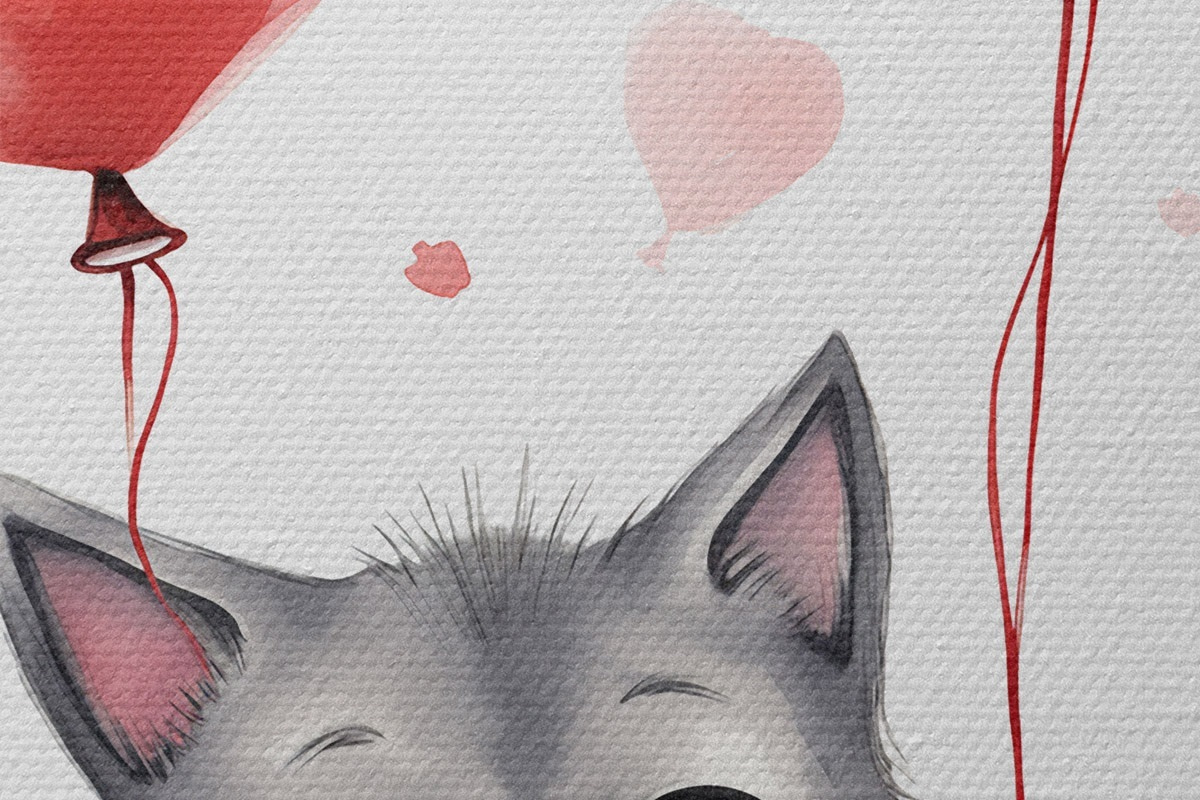 Immagine Simpatico gattino con palloncini a forma di cuore Nr r42871