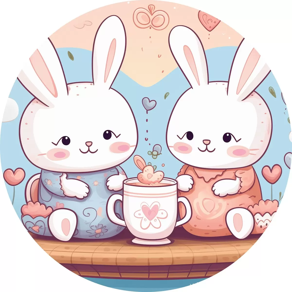 Quadri rotondi Coniglietti carini, festa del tè r42873