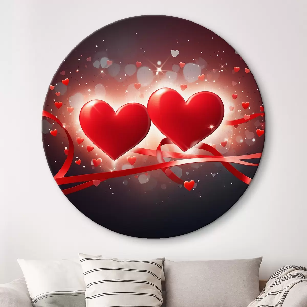 Quadri rotondi Due cuori su uno sfondo astratto r42877