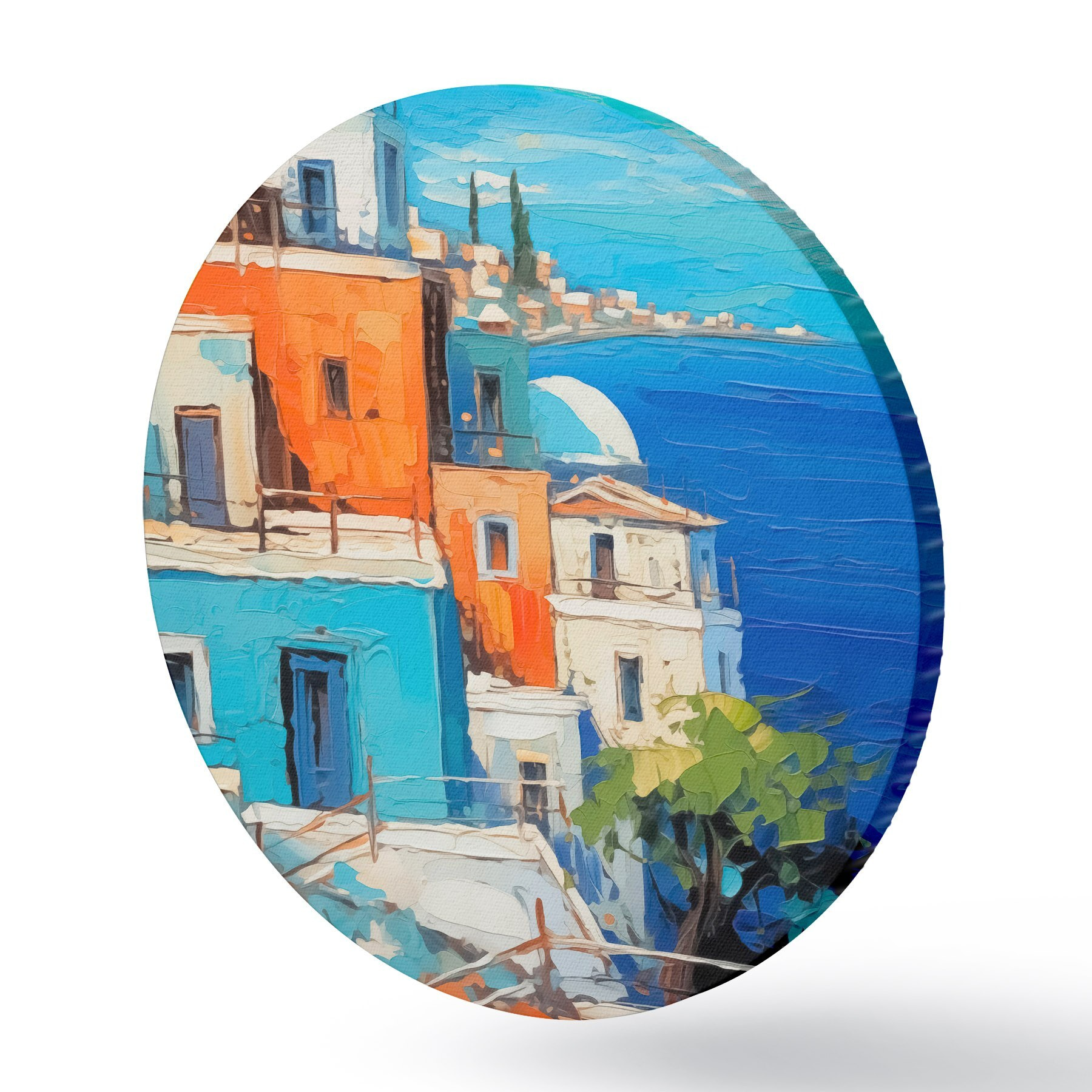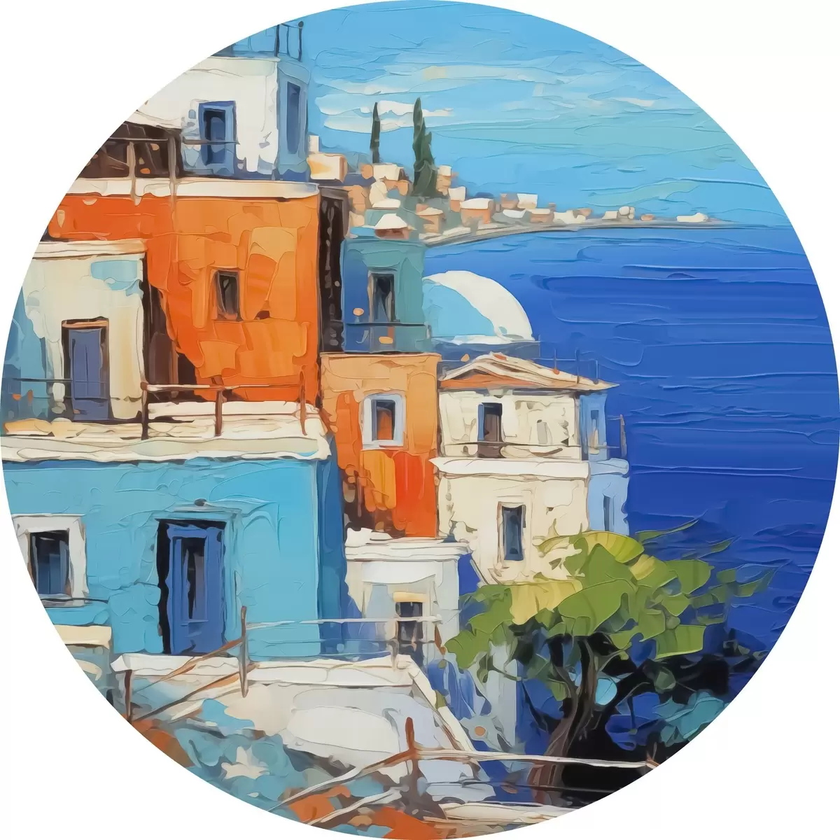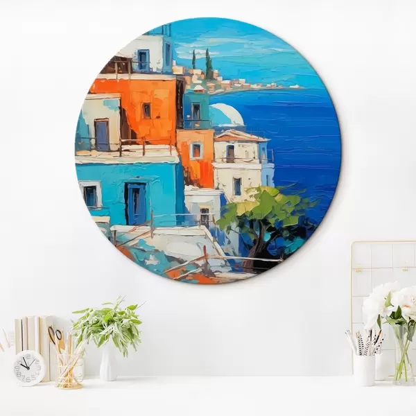 Quadri rotondi Case al mare imitazione di pennellate di pittura r42899