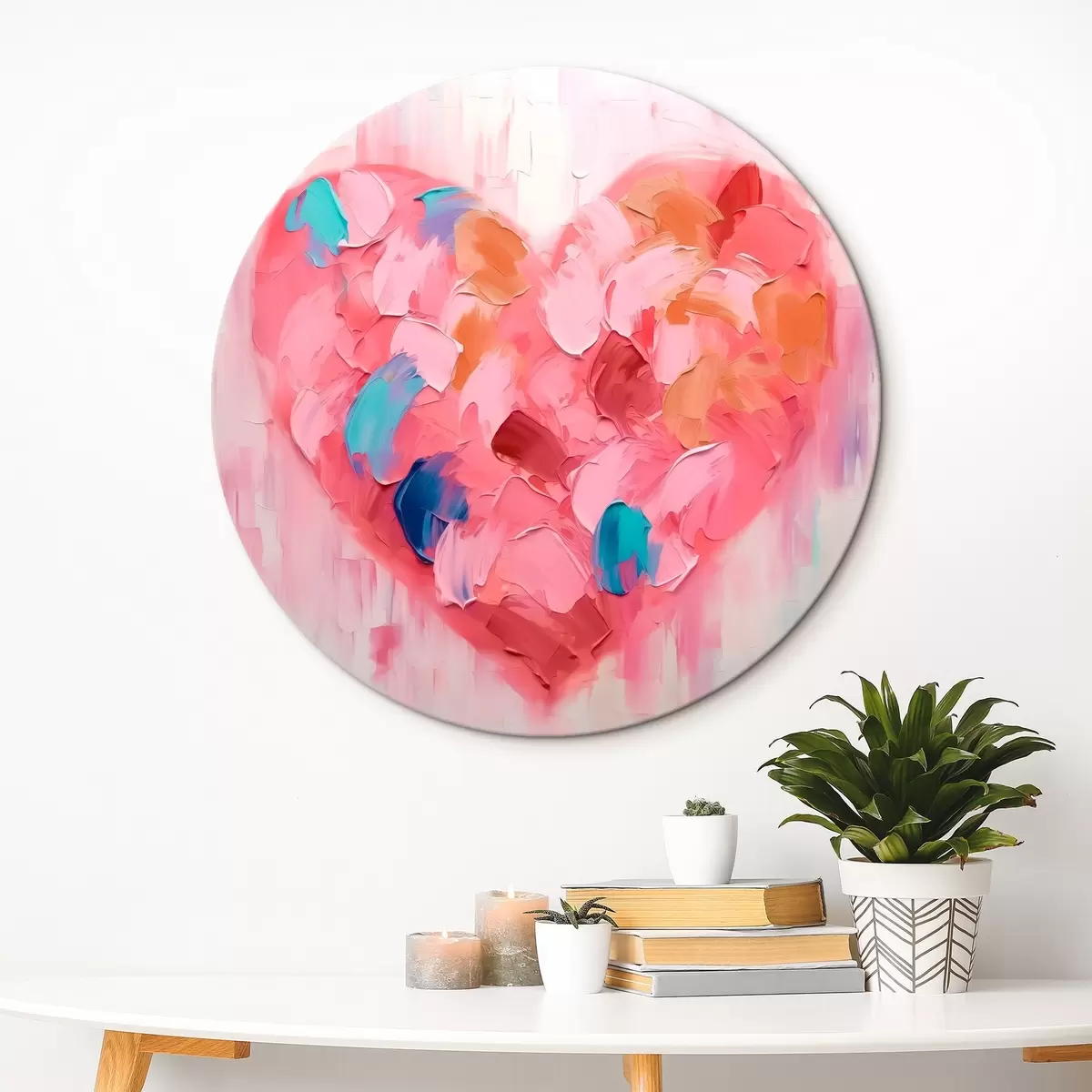 Quadri rotondi Cuore pennellate astratte di imitazione r42911