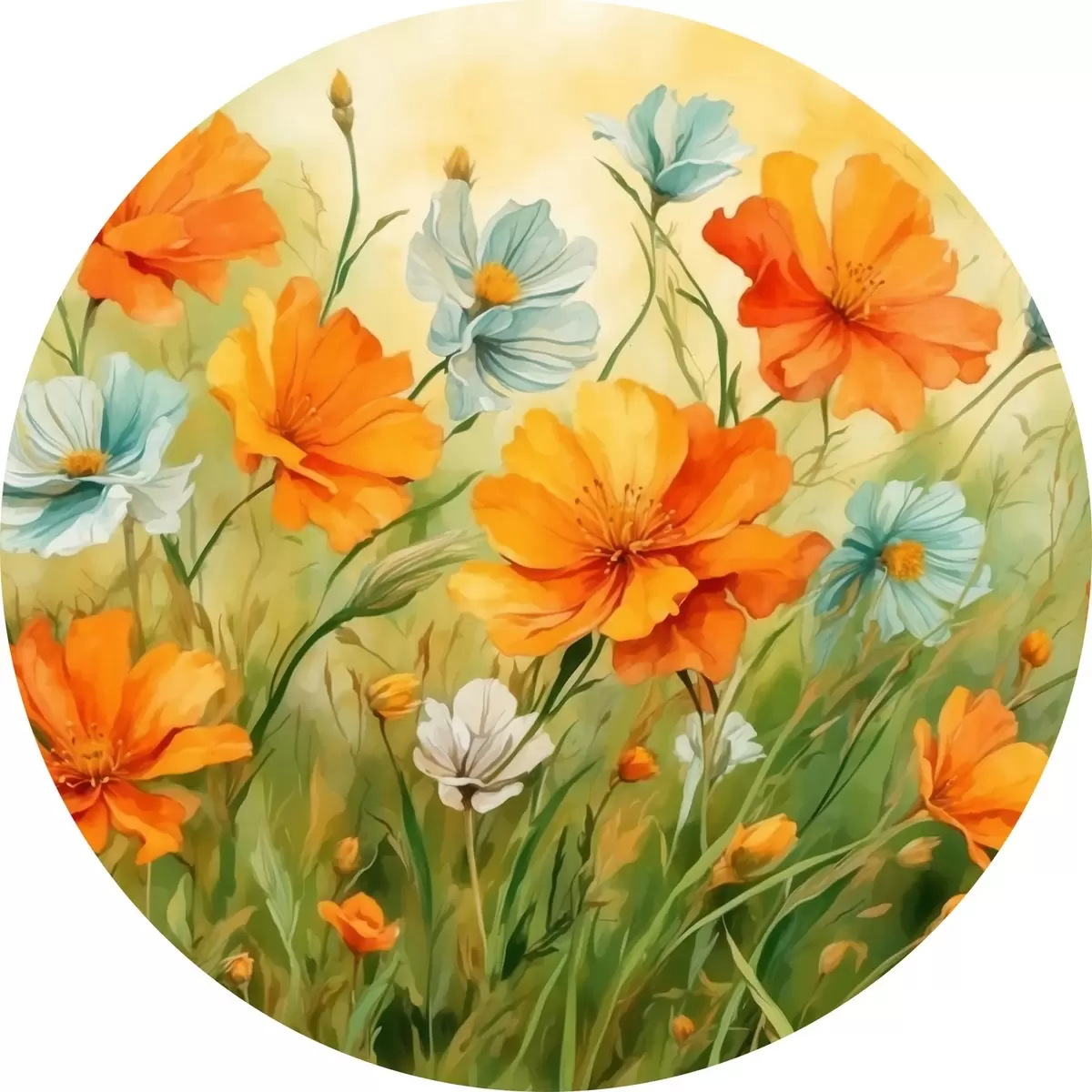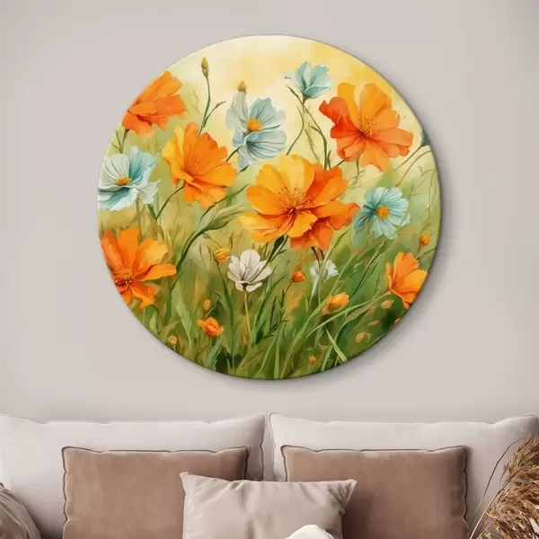 Quadri rotondi Campo di fiori e piante in stile pittura ad acquerello r42916