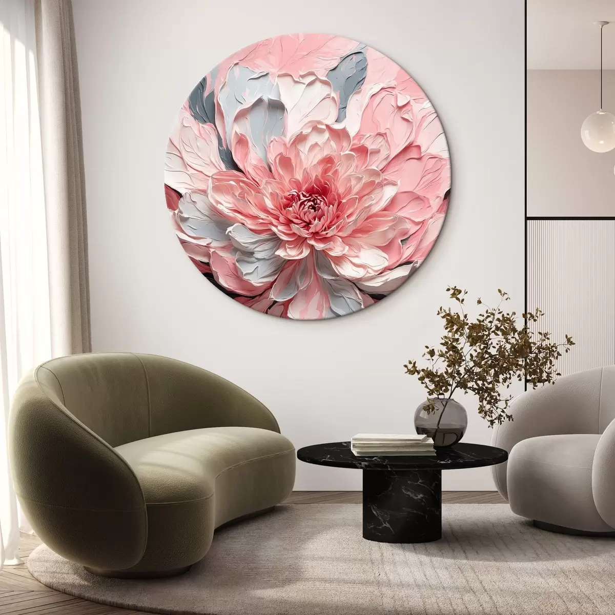 Quadri rotondi Fiore rosa in pittura ad olio r42917