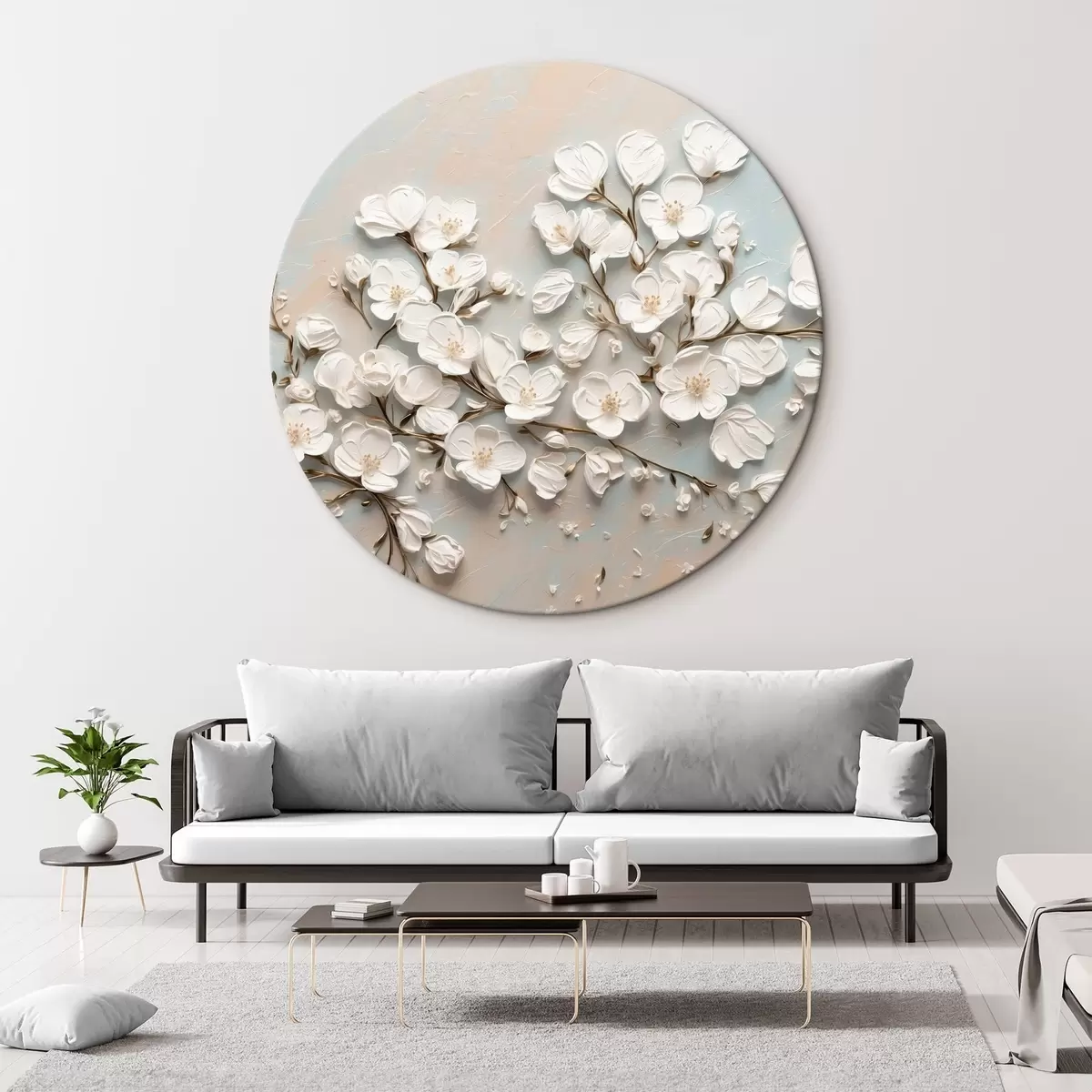 Quadri rotondi Fiore bianco di piccole dimensioni in pittura acrilica r42921