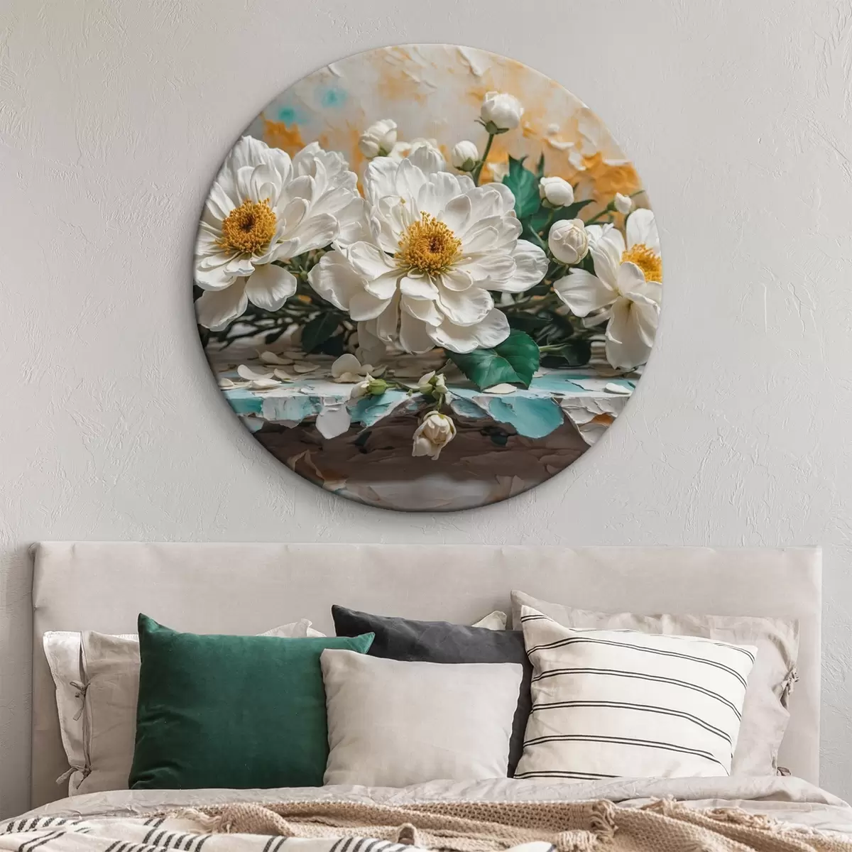 Quadri rotondi Fiori bianchi su un tavolo su uno sfondo astratto r42924