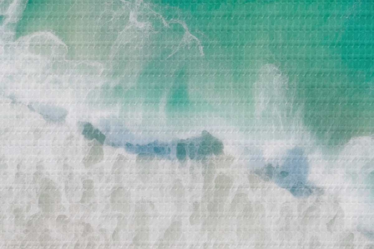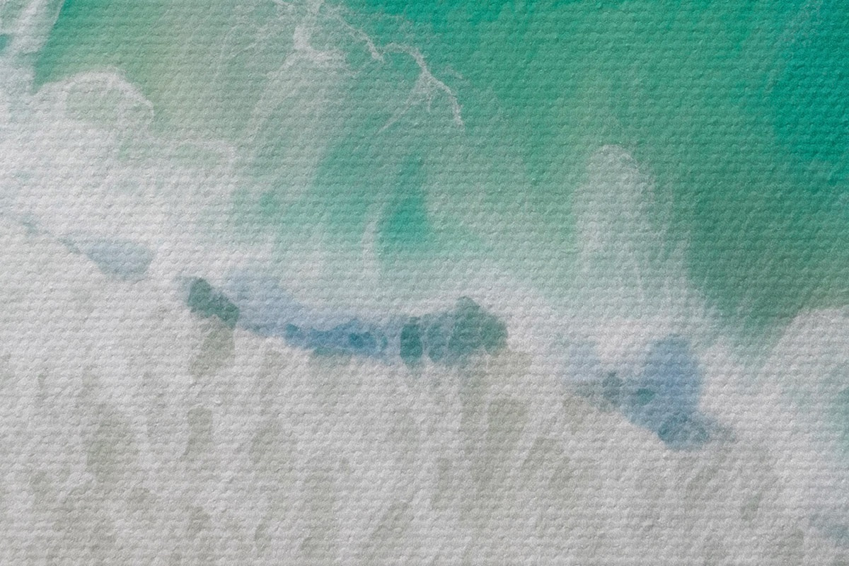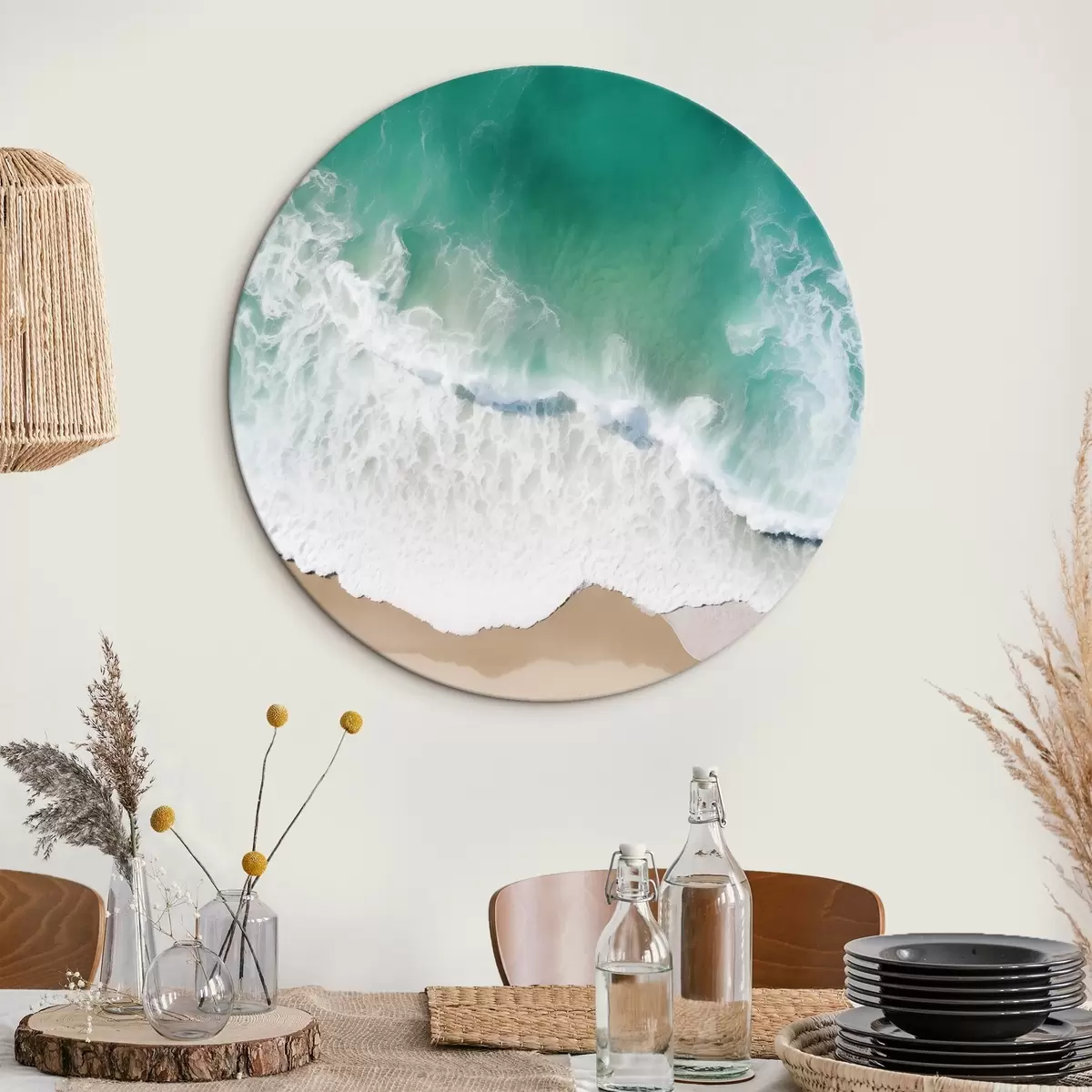 Quadri rotondi Vista aerea di un litorale marino con onde turchesi che si infrangono dolcemente sulla spiaggia sabbiosa r42930
