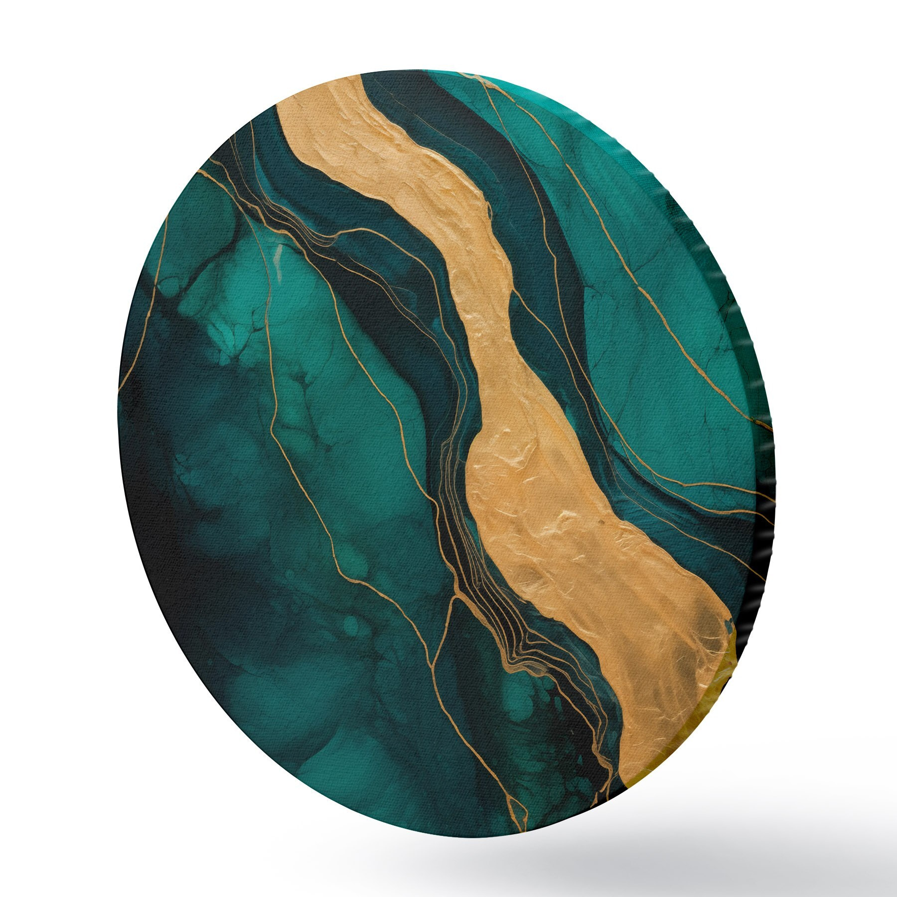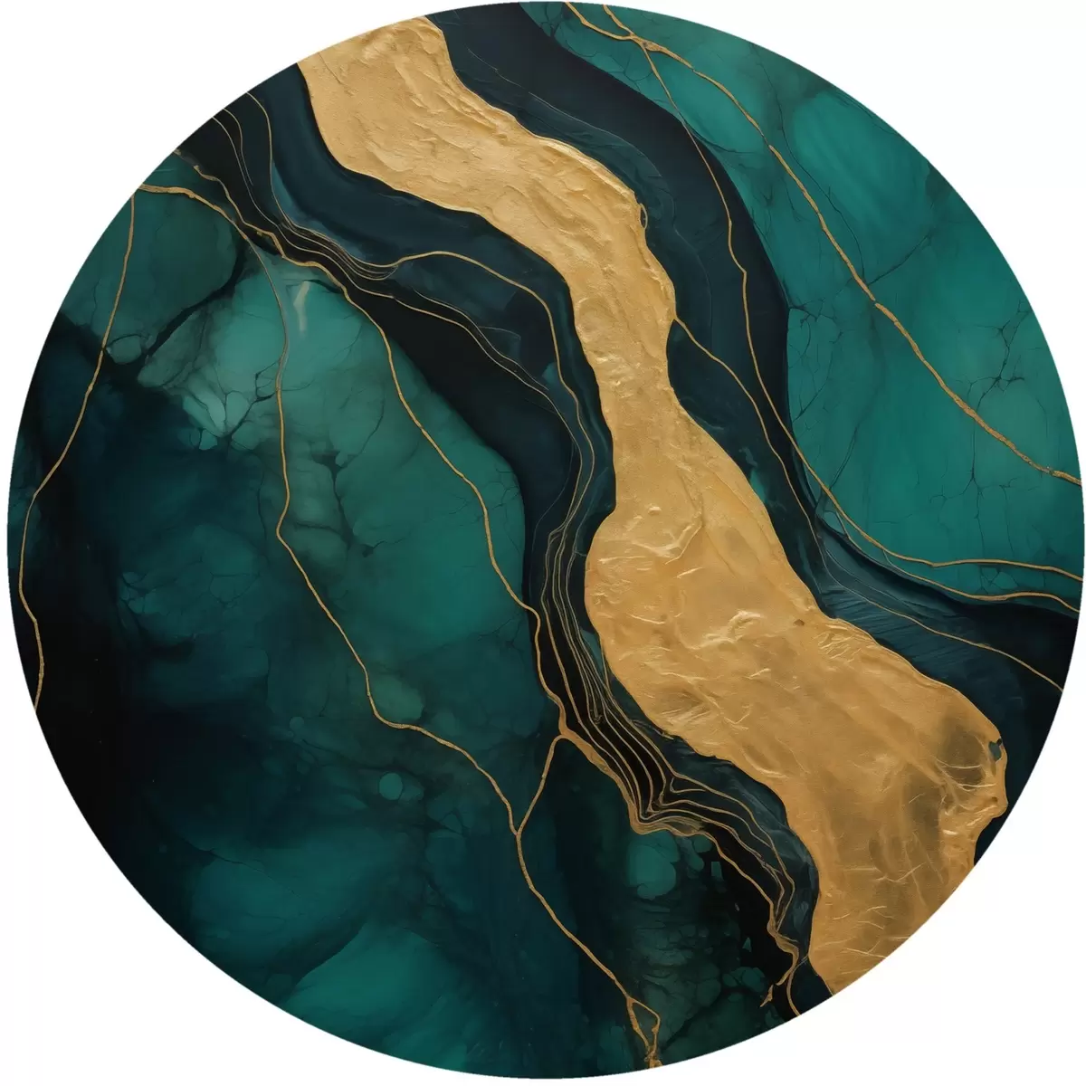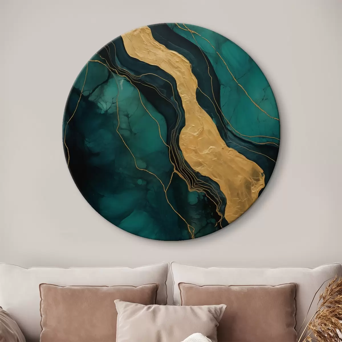 Quadri rotondi Motivo astratto con profonde sfumature di verde e un caldo elemento di contrasto r42934