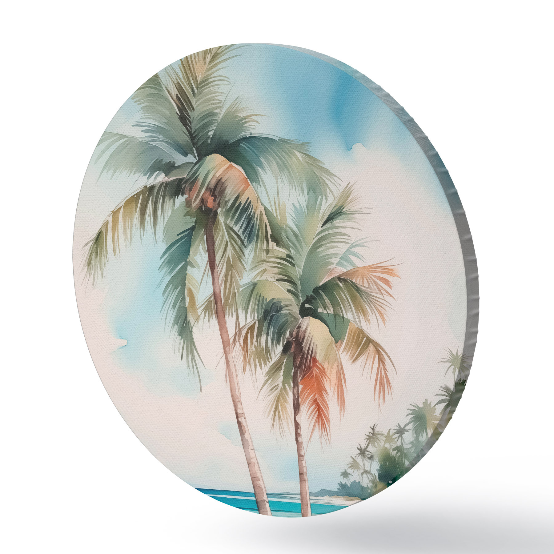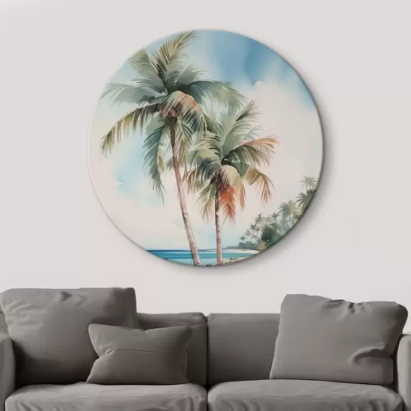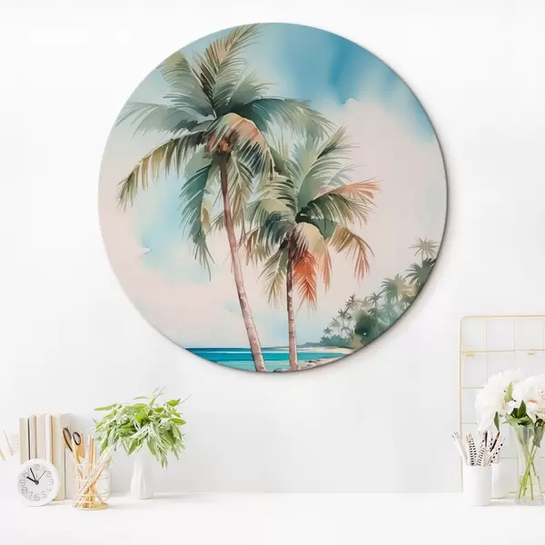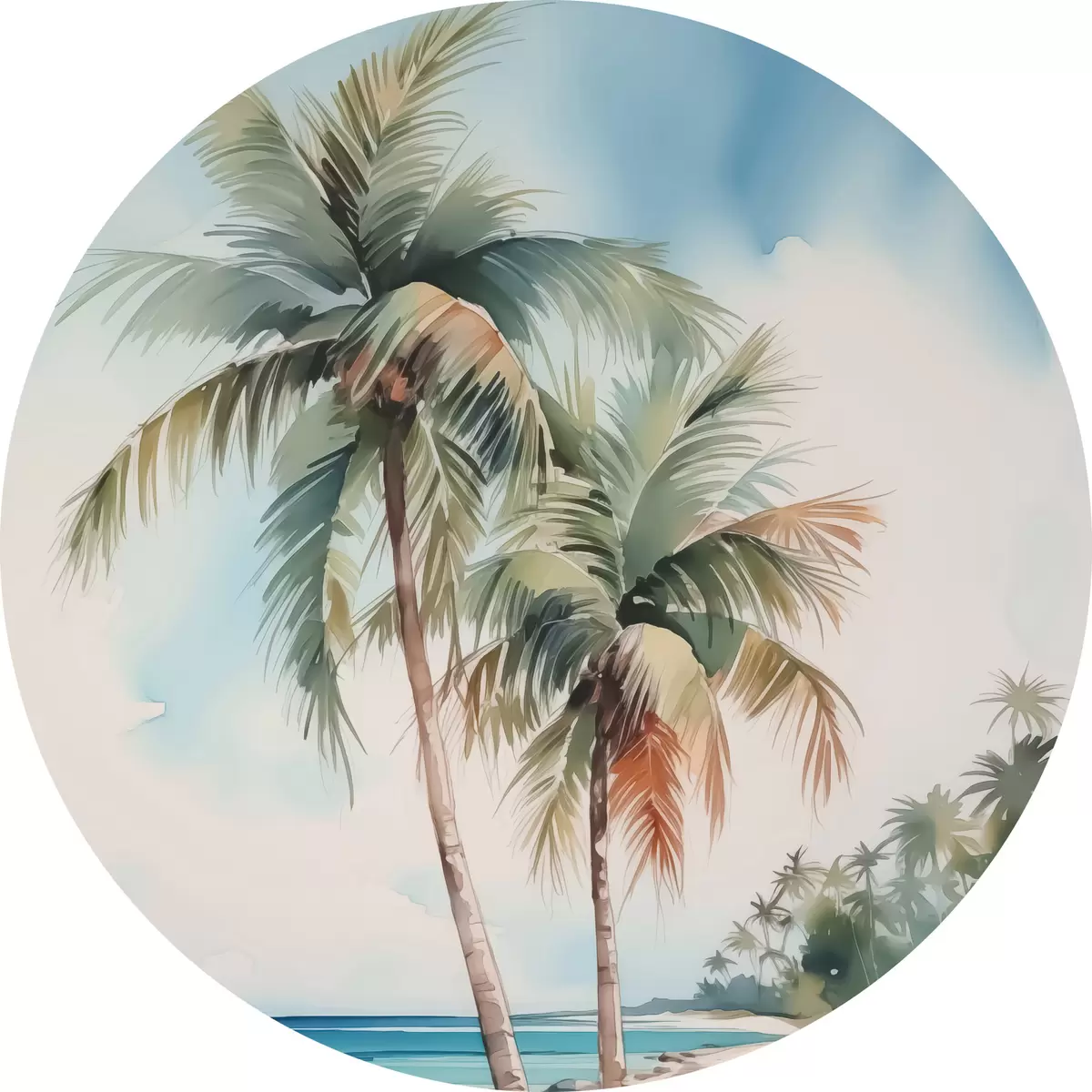 Quadri rotondi Palme in riva al mare imitazione dell'acquerello r42958