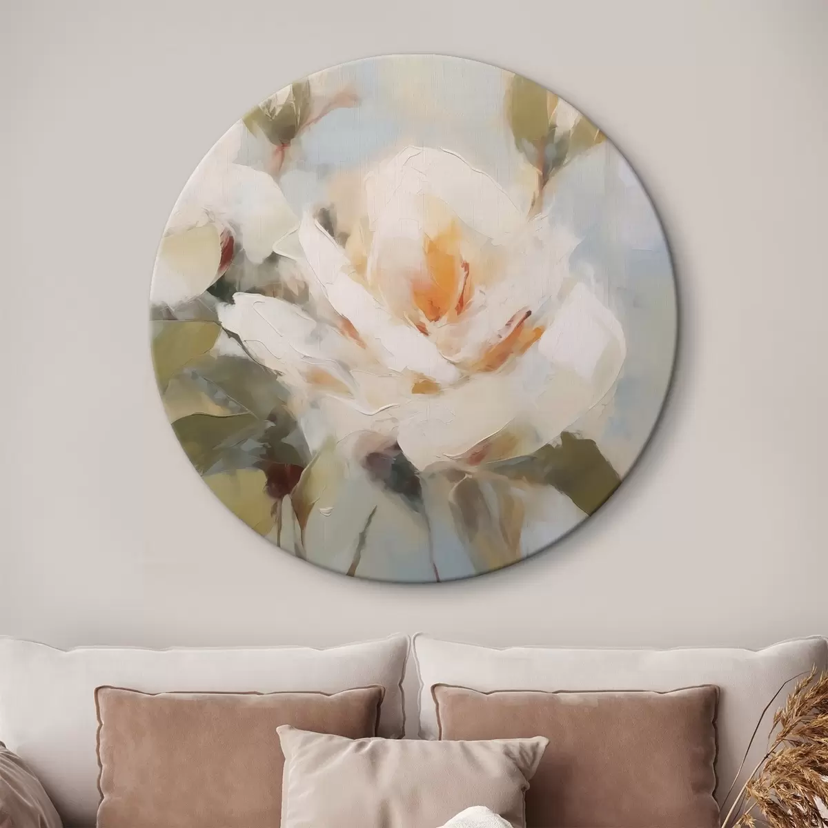 Quadri rotondi Fiori bianchi astratti r42963