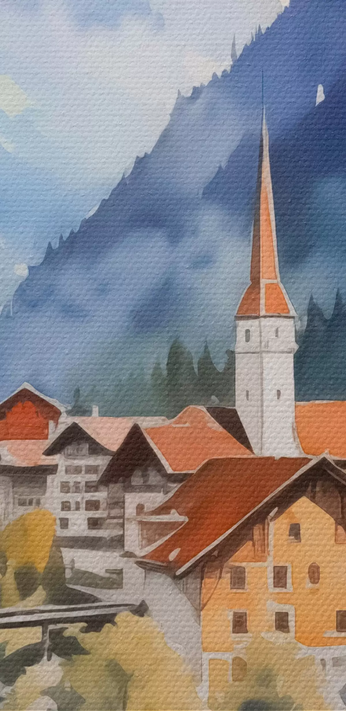 Immagine Villaggio vicino alle montagne imitazione acquerello Nr r42964