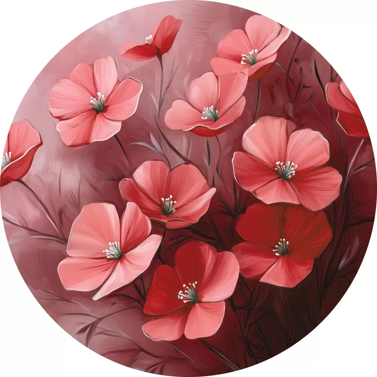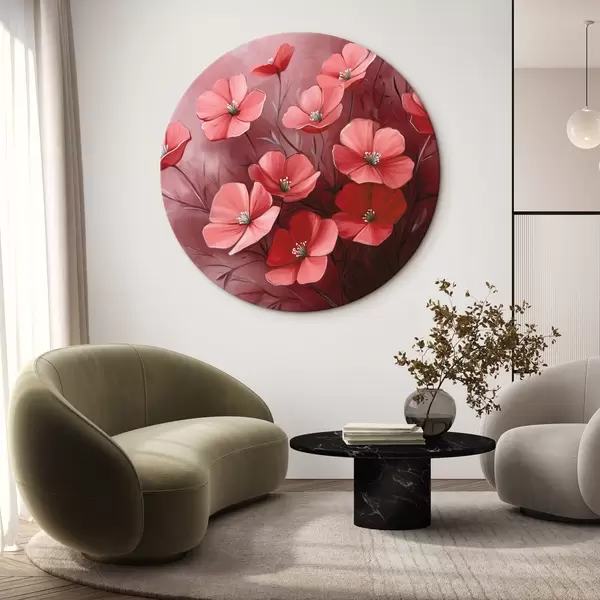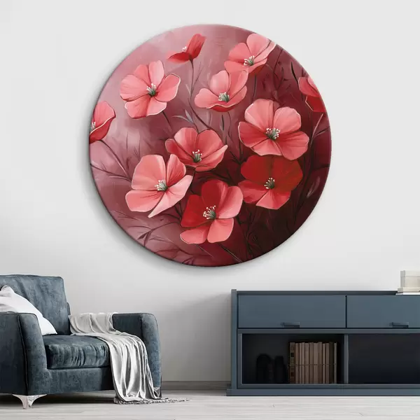 Quadri rotondi Fiori rossi su sfondo rosso r42970