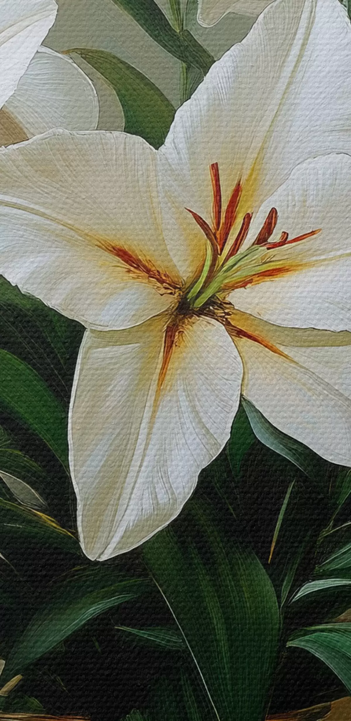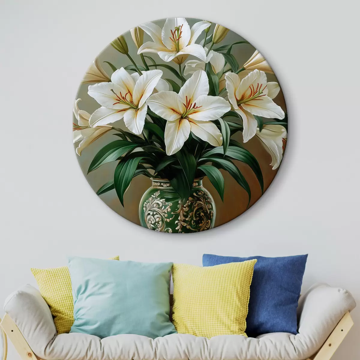 Quadri rotondi Bouquet di gigli bianchi in vaso r42975