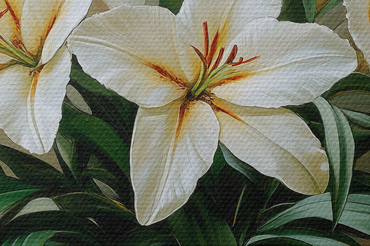 Sono disponibili tre tipi di materiale per l'ordinazione: Economic Canvas - materiale denso e resistente per la stampa digitale, identico alla tela del pittore, superficie impermeabile, riproduzione realistica dei dettagli, materiale a grana media. Premium Canvas - la trama ricorda la tela di un pittore (piccoli fili intrecciati). Riproduzione morbida e dettagliata dell'immagine su una superficie opaca. Eco-Premium - tessuto di alta qualità in 100% cotone. Grazie alle fibre naturali di cotone, il materiale è durevole e resistente all'usura. Eccellente riproduzione dei colori e dei dettagli.