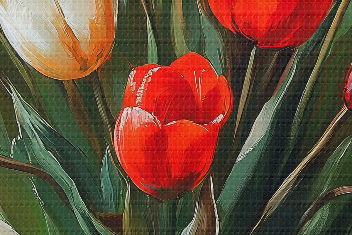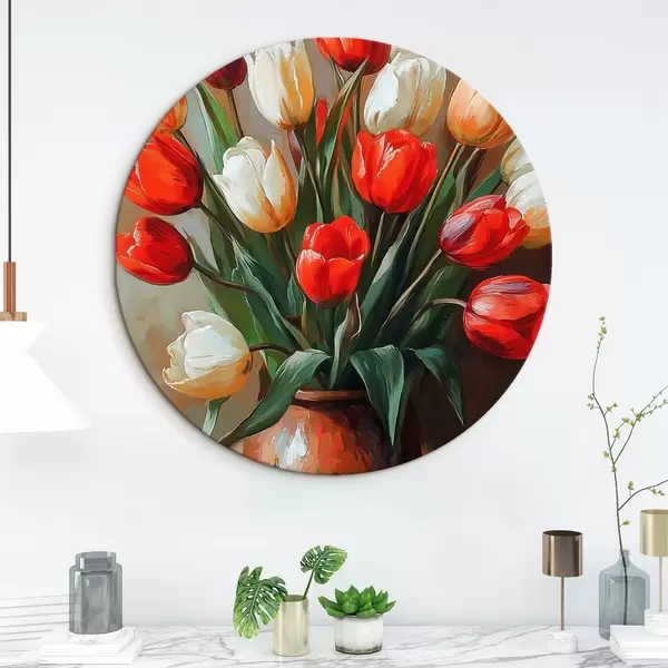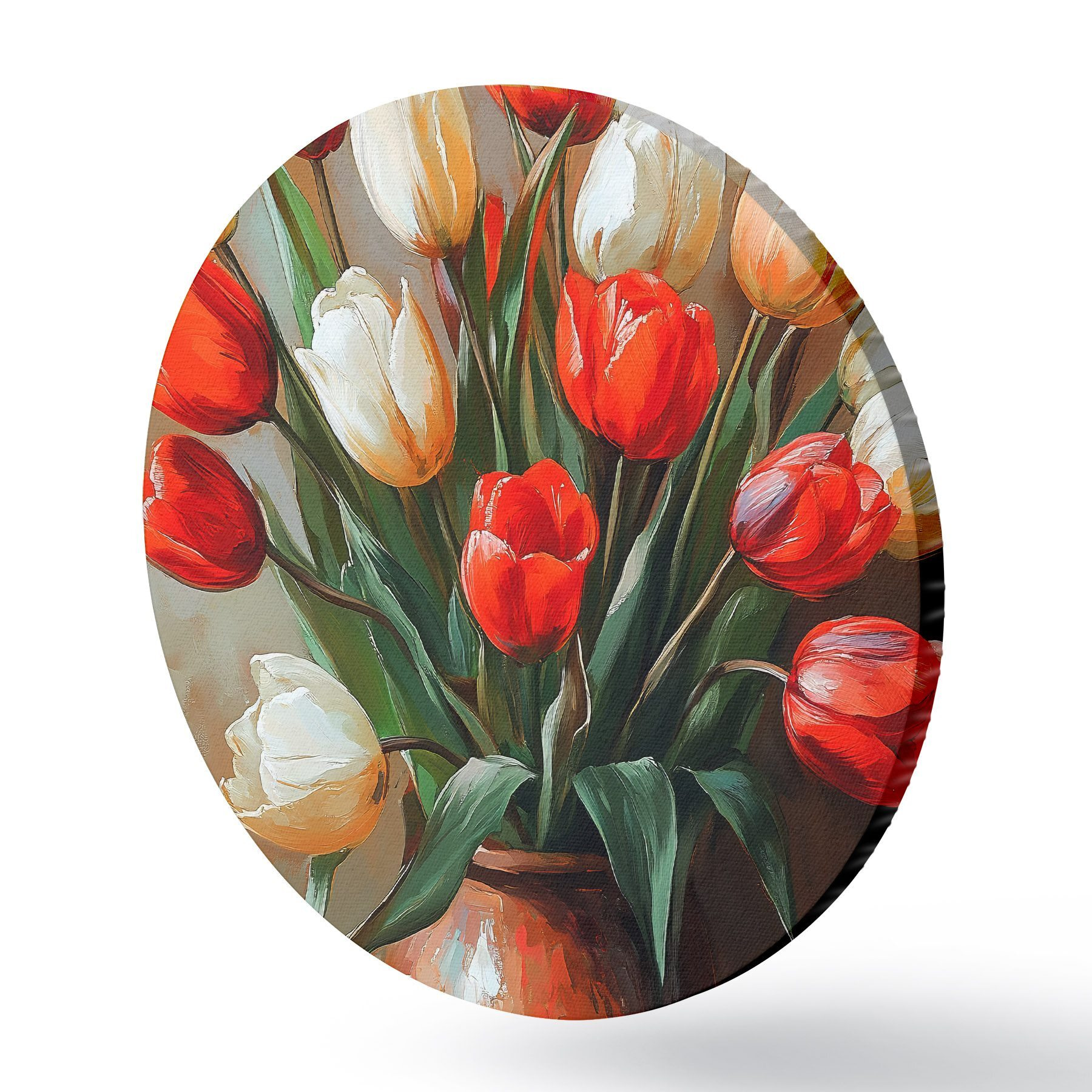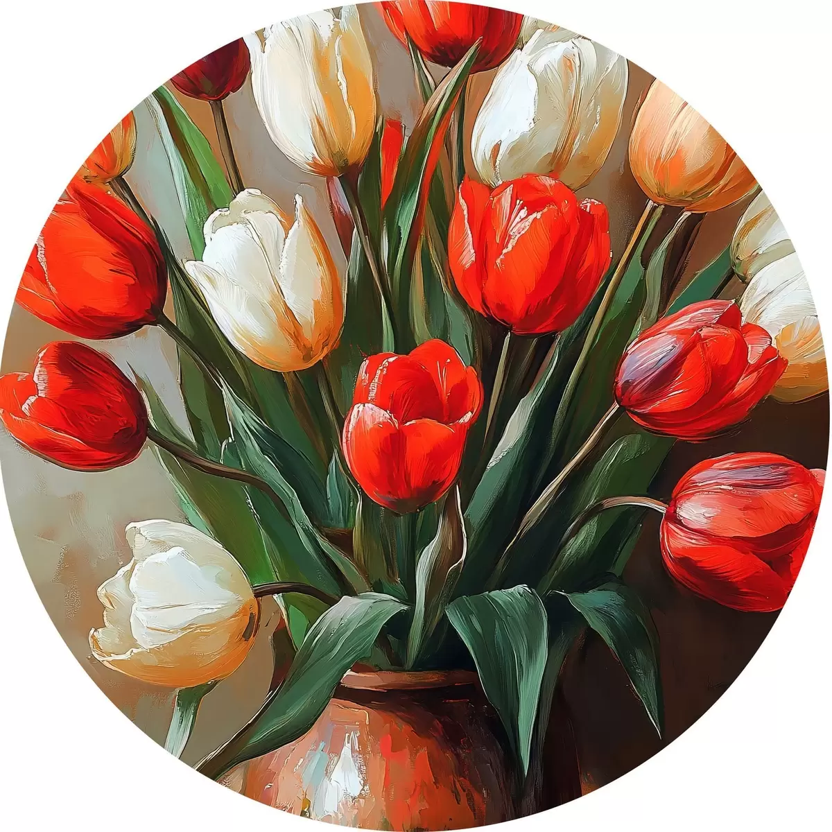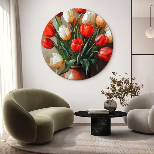 Quadri rotondi Bouquet di tulipani rossi e bianchi r42981