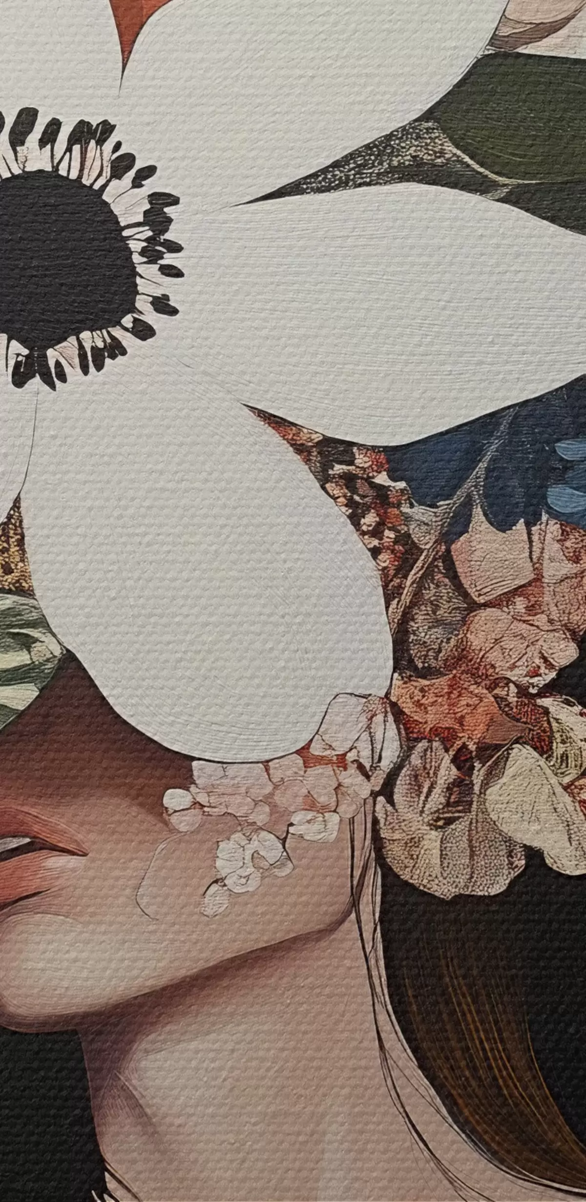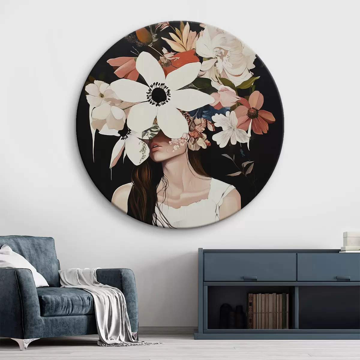 Quadri rotondi Ragazza con fiori sul viso r42989