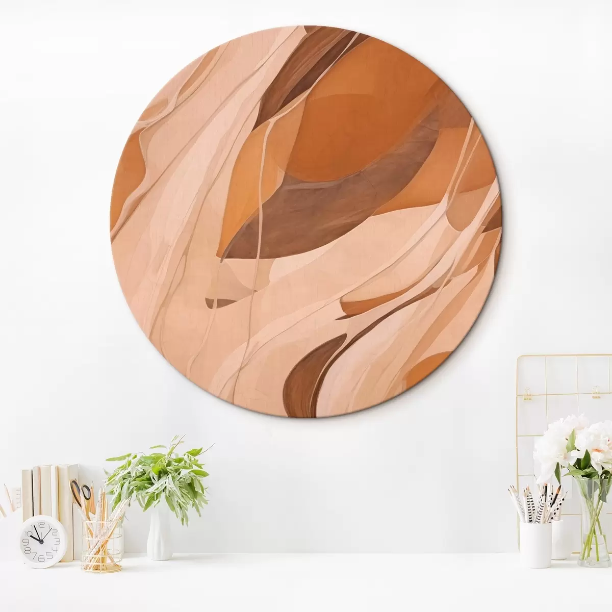 Quadri rotondi Linee astratte e morbide nei toni del marrone r43006