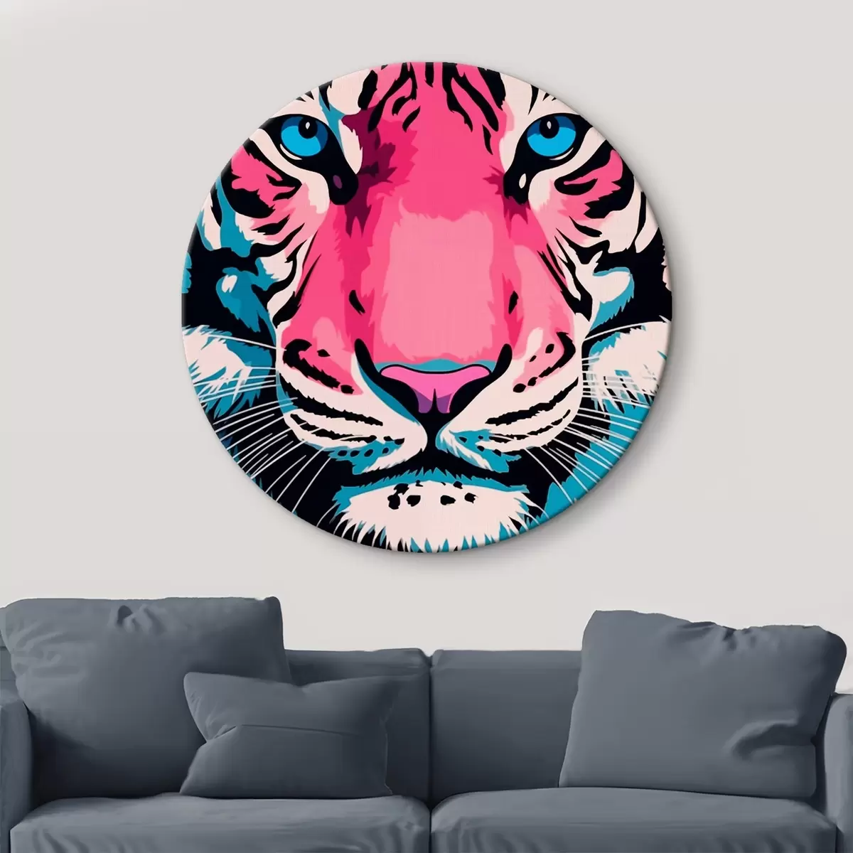 Quadri rotondi Ritratto stilizzato di una tigre con colori vivaci r43007