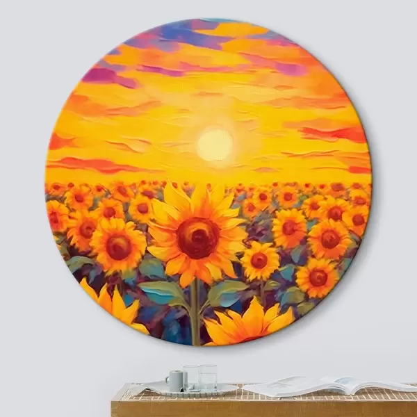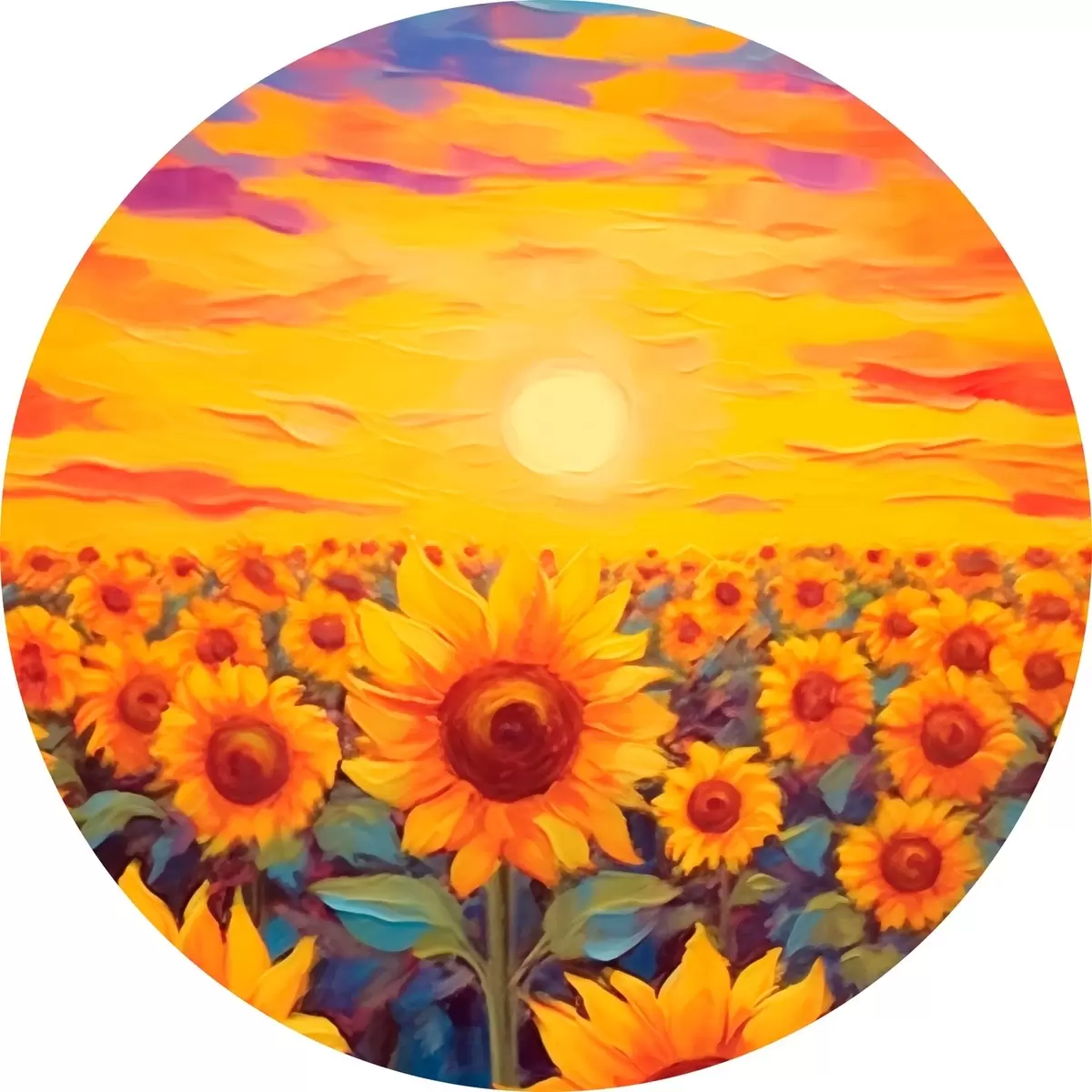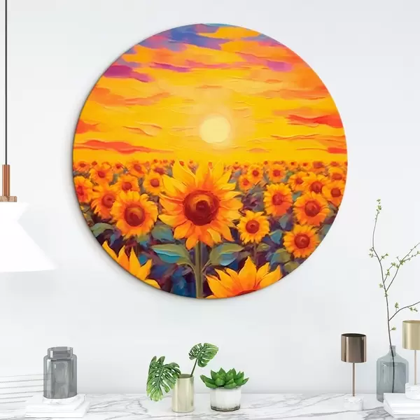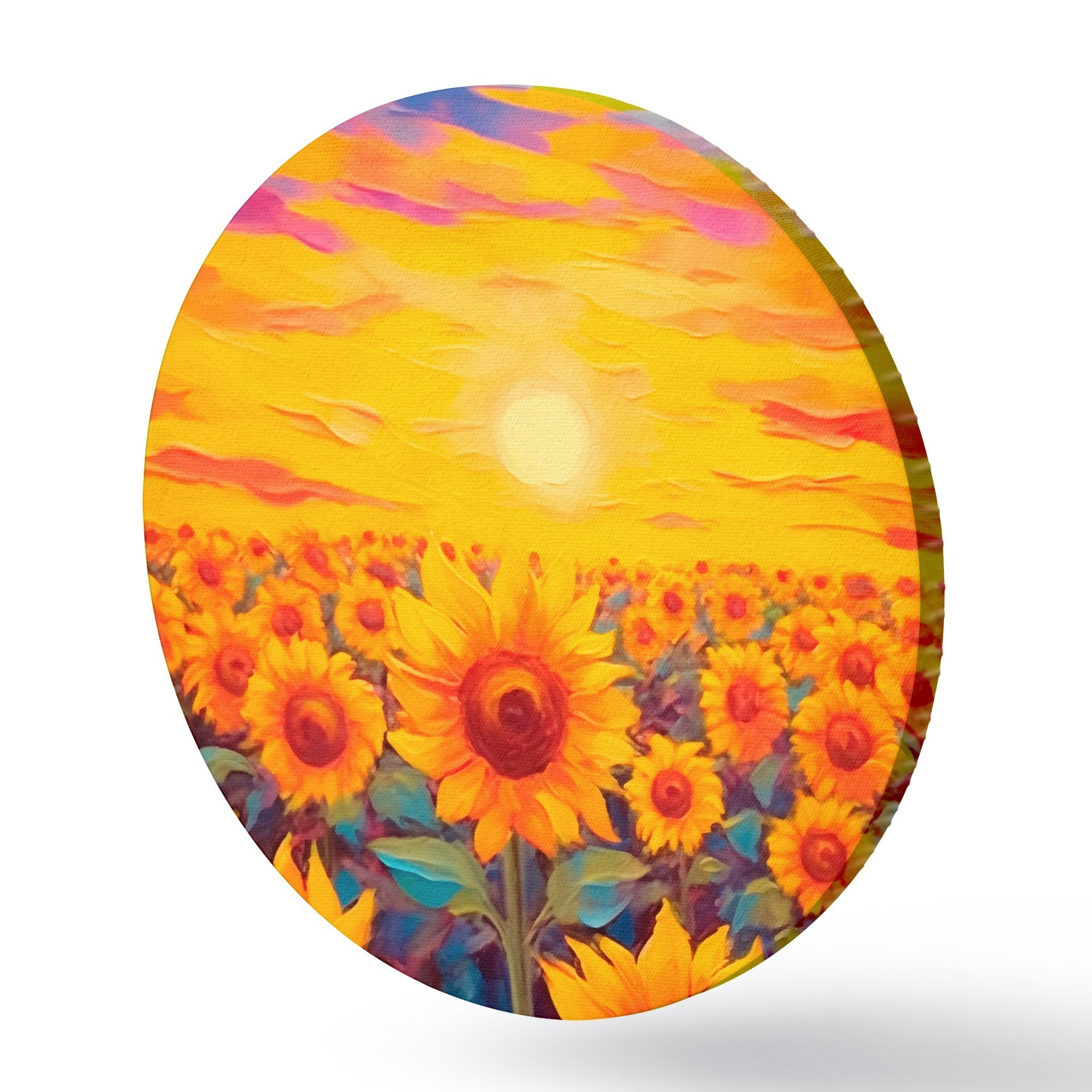 Quadri rotondi Campo di girasoli al tramonto r43010