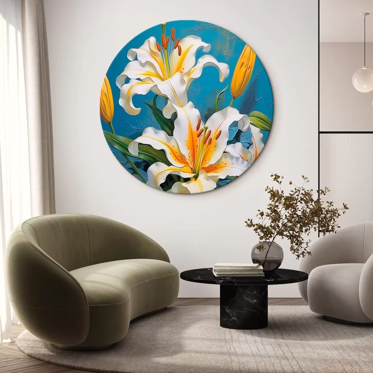 Quadri rotondi Gigli bianchi su sfondo blu r43018