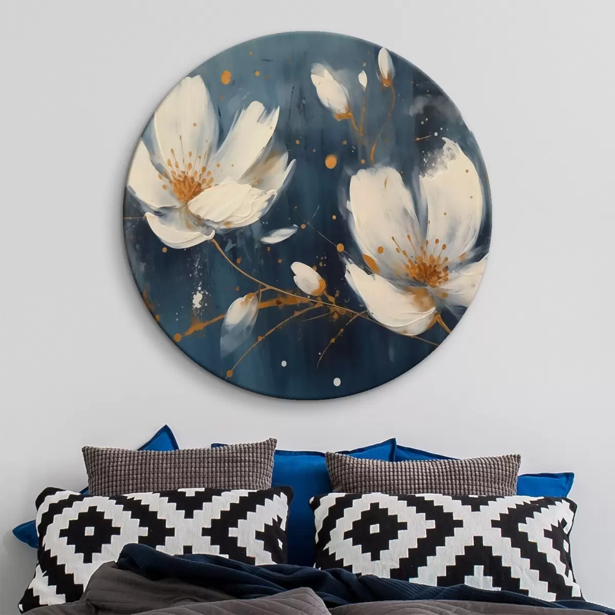 Quadri rotondi Fiori bianchi su sfondo blu r43025