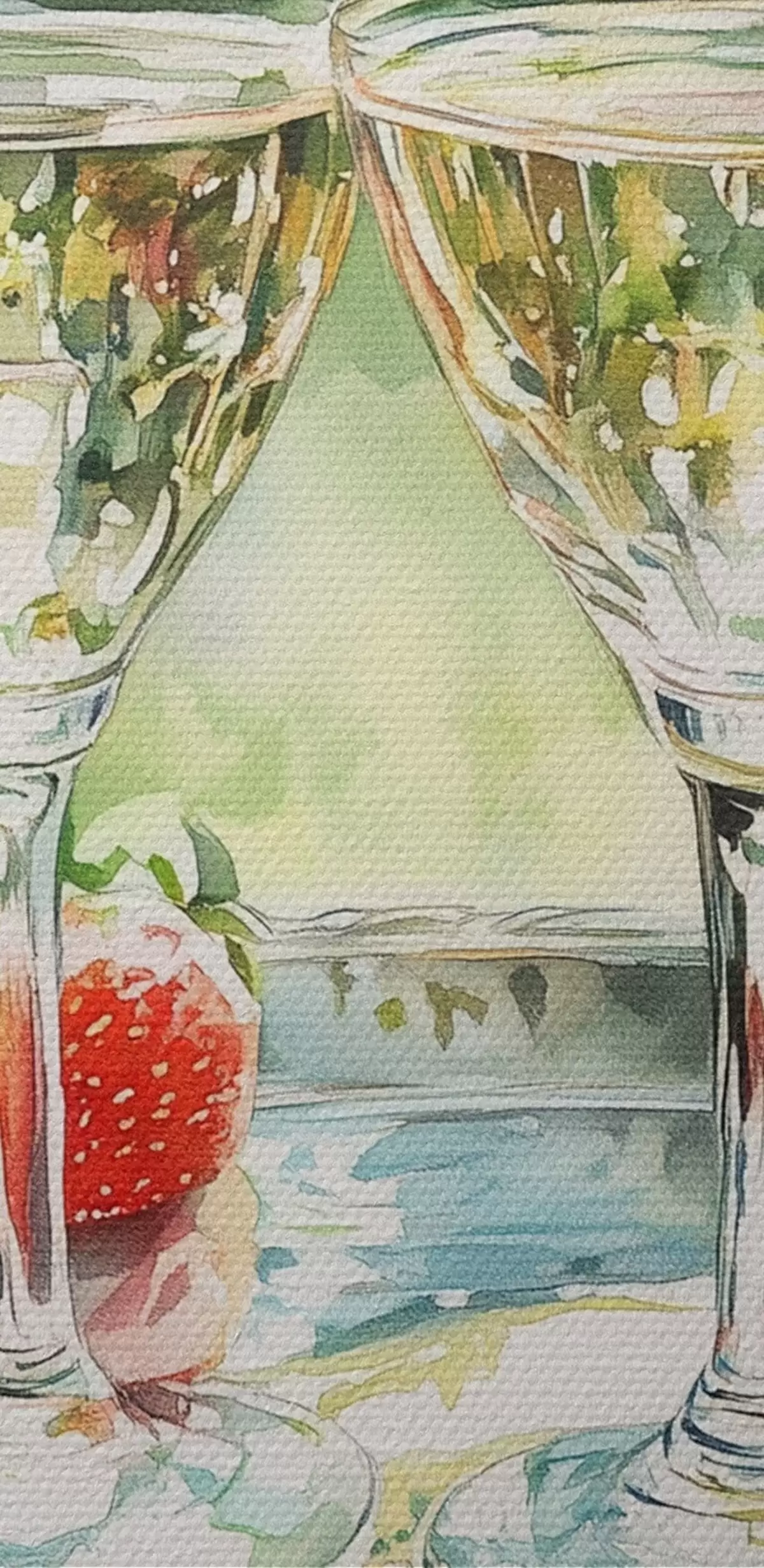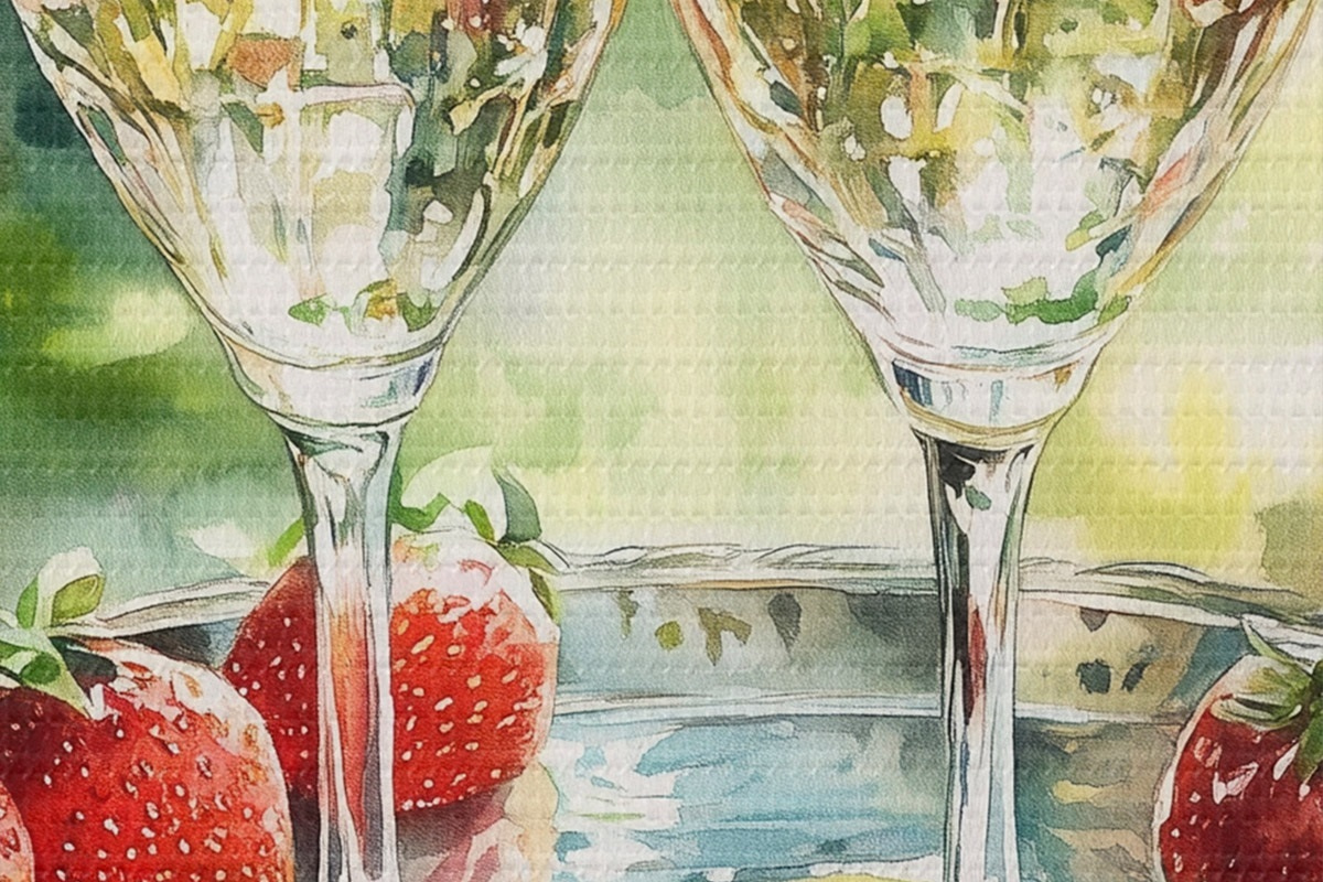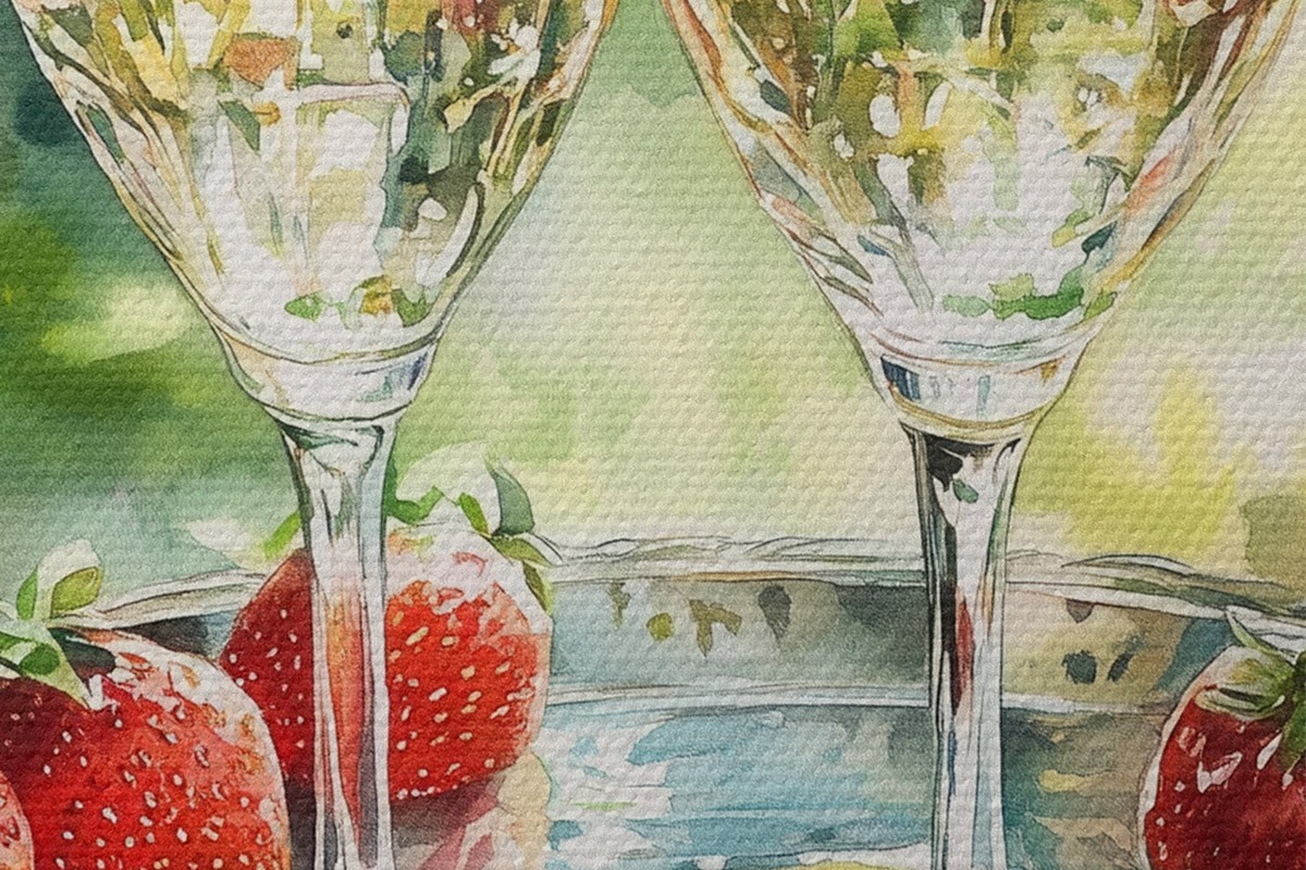 Immagine Picnic estivo con champagne e fragole, disegno in stile acquerello Nr r43055
