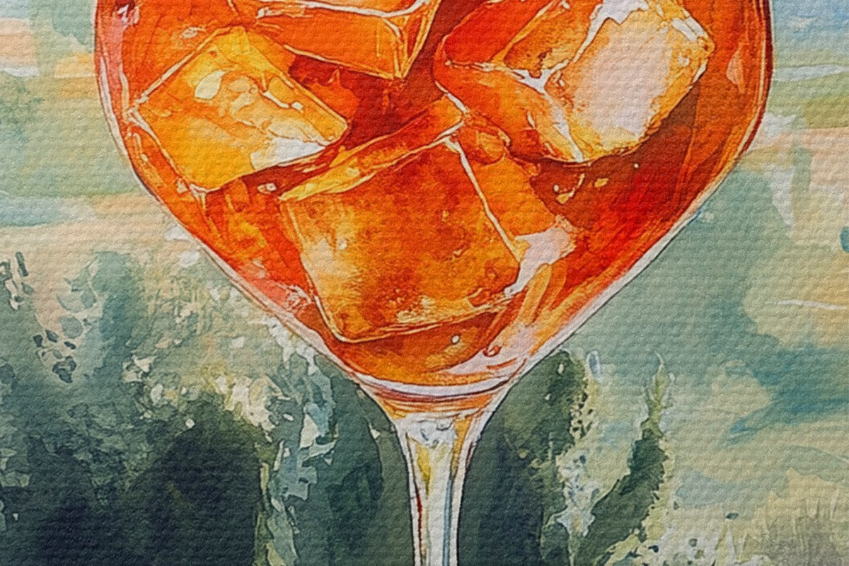 Immagine Cocktail estivo, Aperol Spritz, arance, disegno in stile acquerello Nr r43058