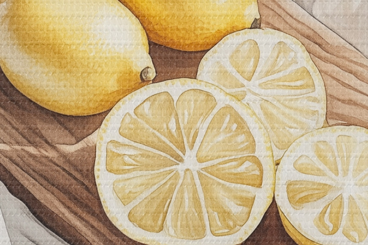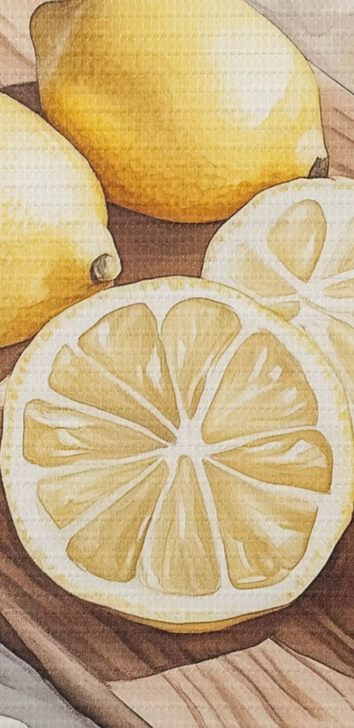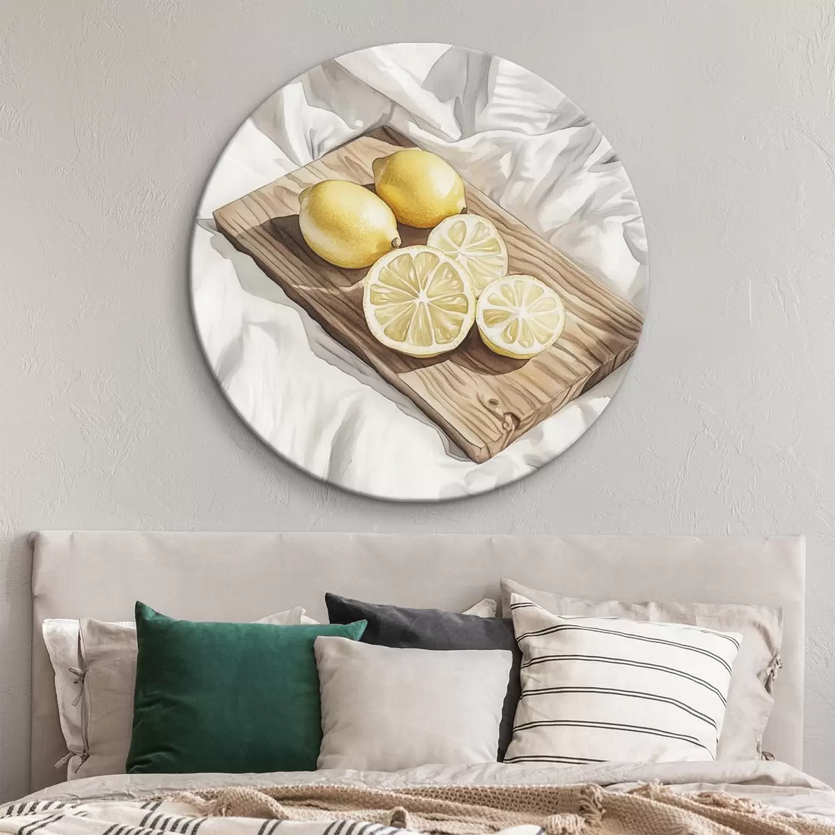 Quadri rotondi Limoni sulla tavola di legno, acquerello, stile rustico r43064