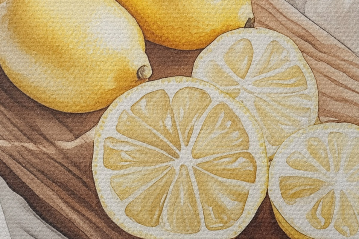 Immagine Limoni sulla tavola di legno, acquerello, stile rustico Nr r43064