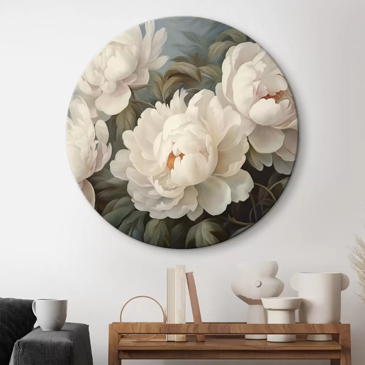 Quadri rotondi Fiori e foglie bianche nella nebbia r43091
