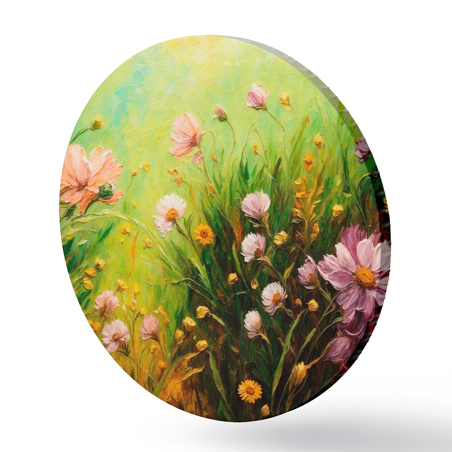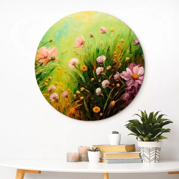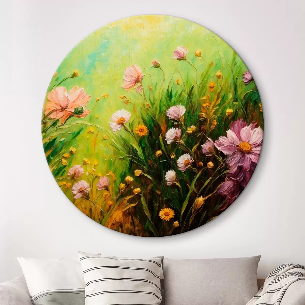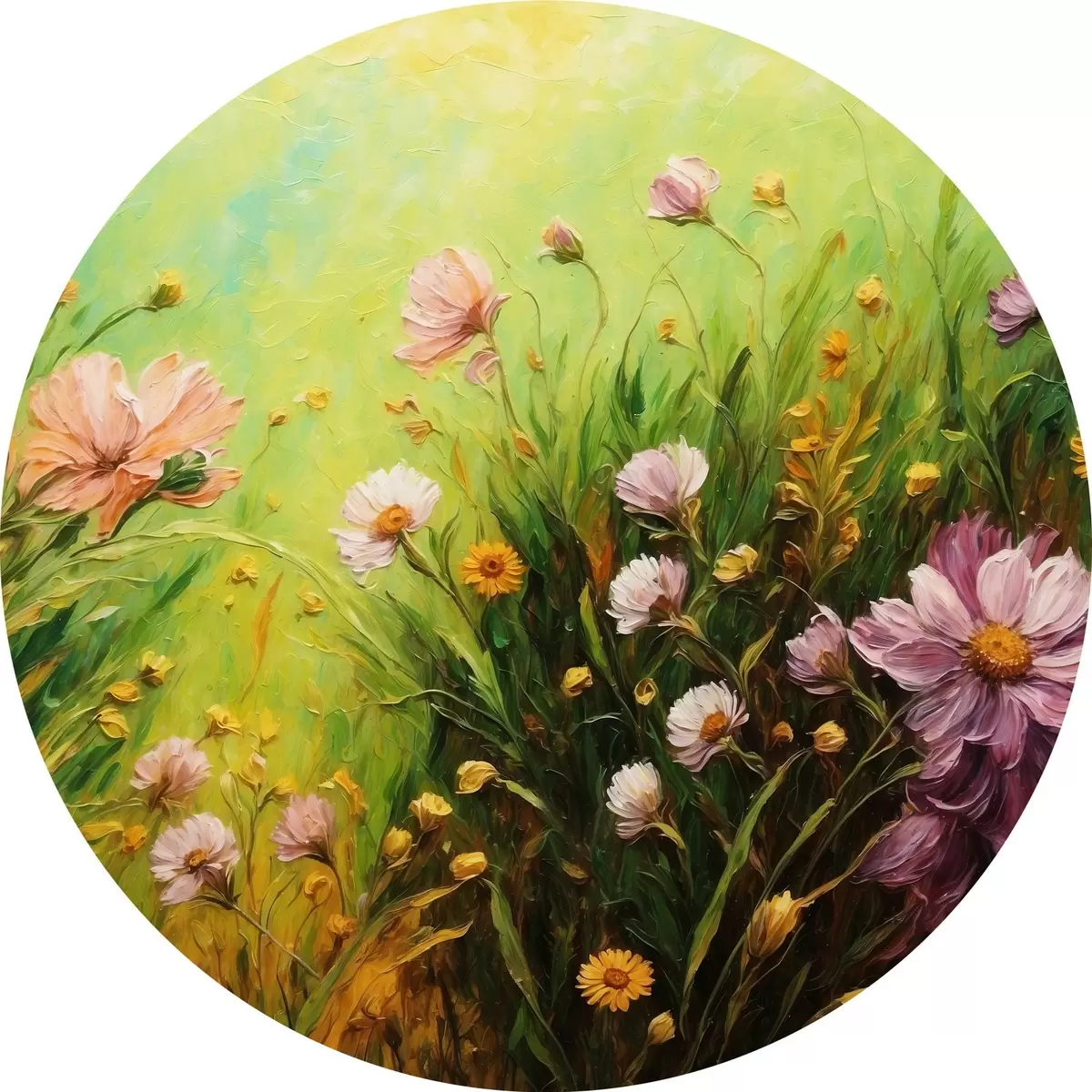 Quadri rotondi Campo di fiori su sfondo verde astratto r43101
