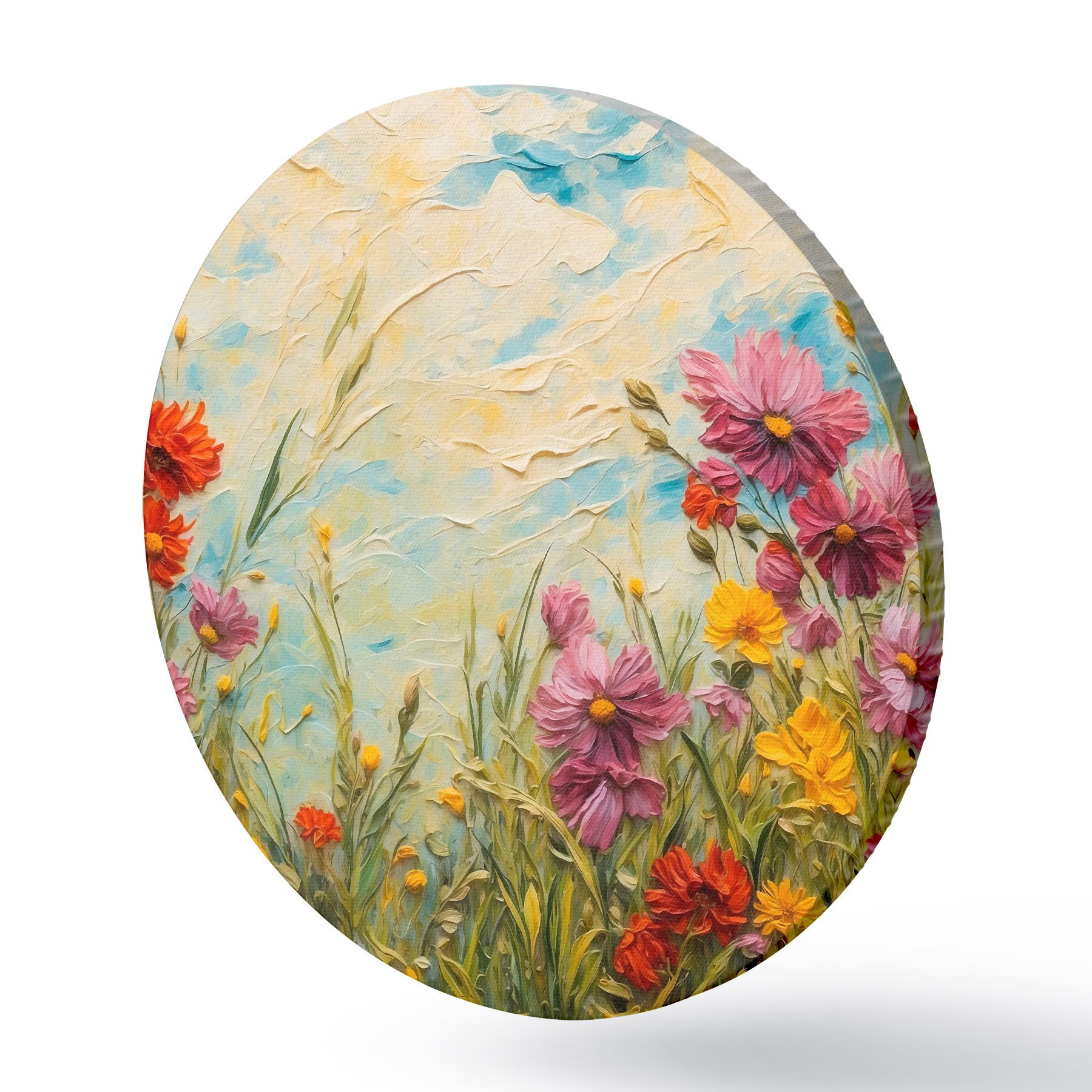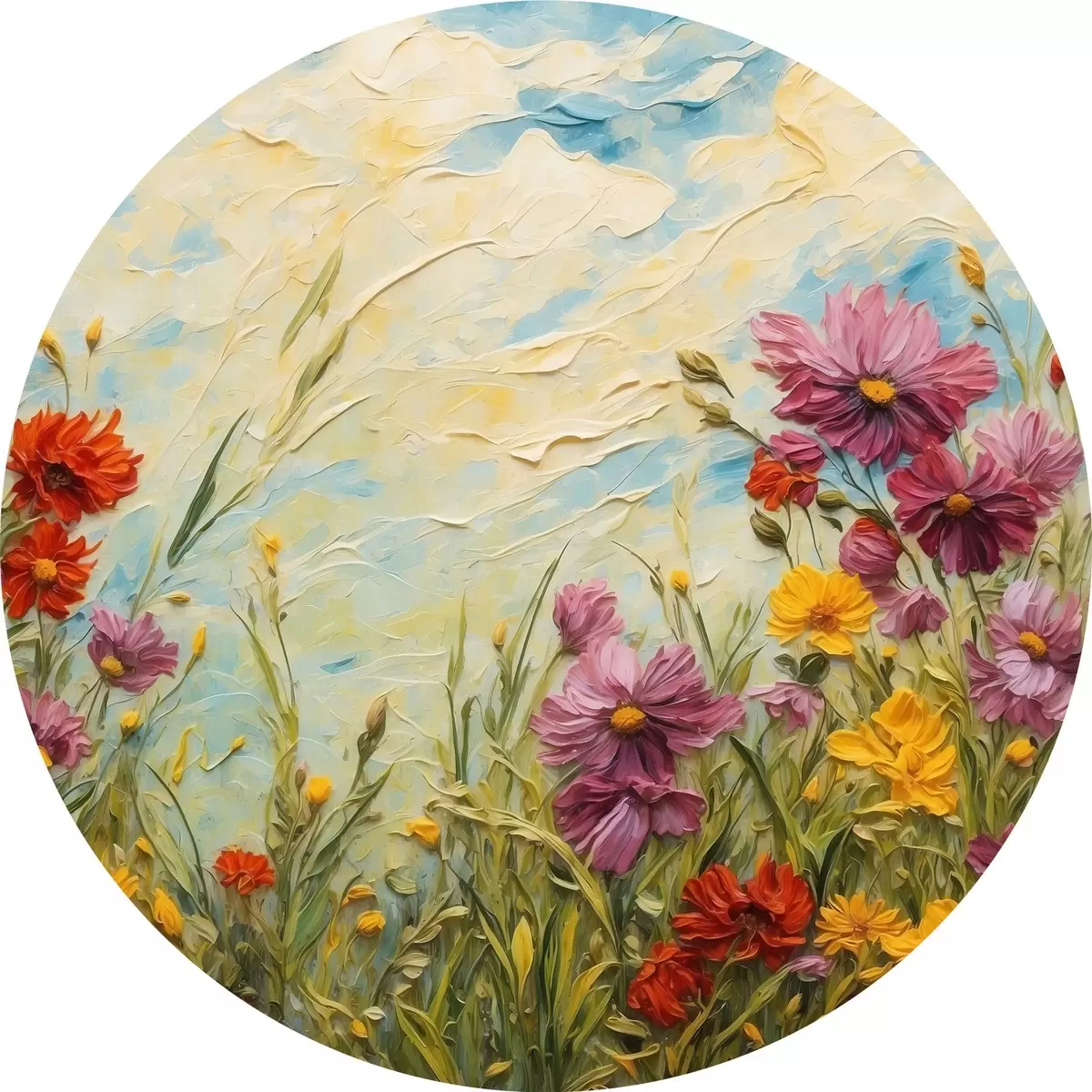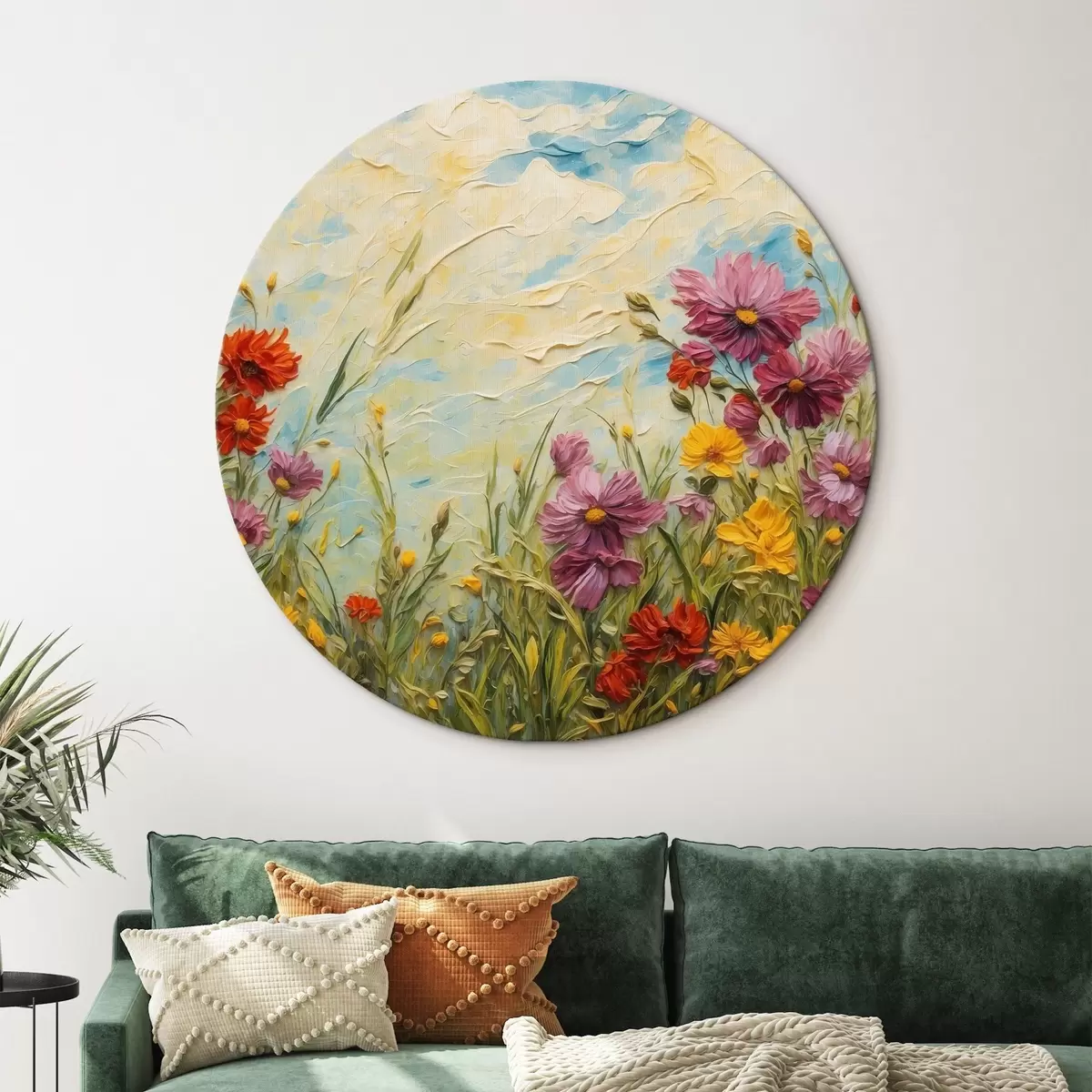 Quadri rotondi Campo di fiori in stile pittura ad olio r43102