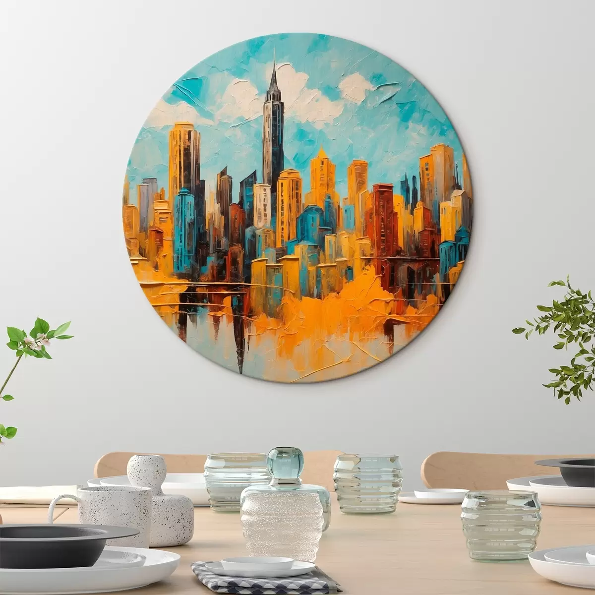 Quadri rotondi Città in stile pittura ad olio r43108