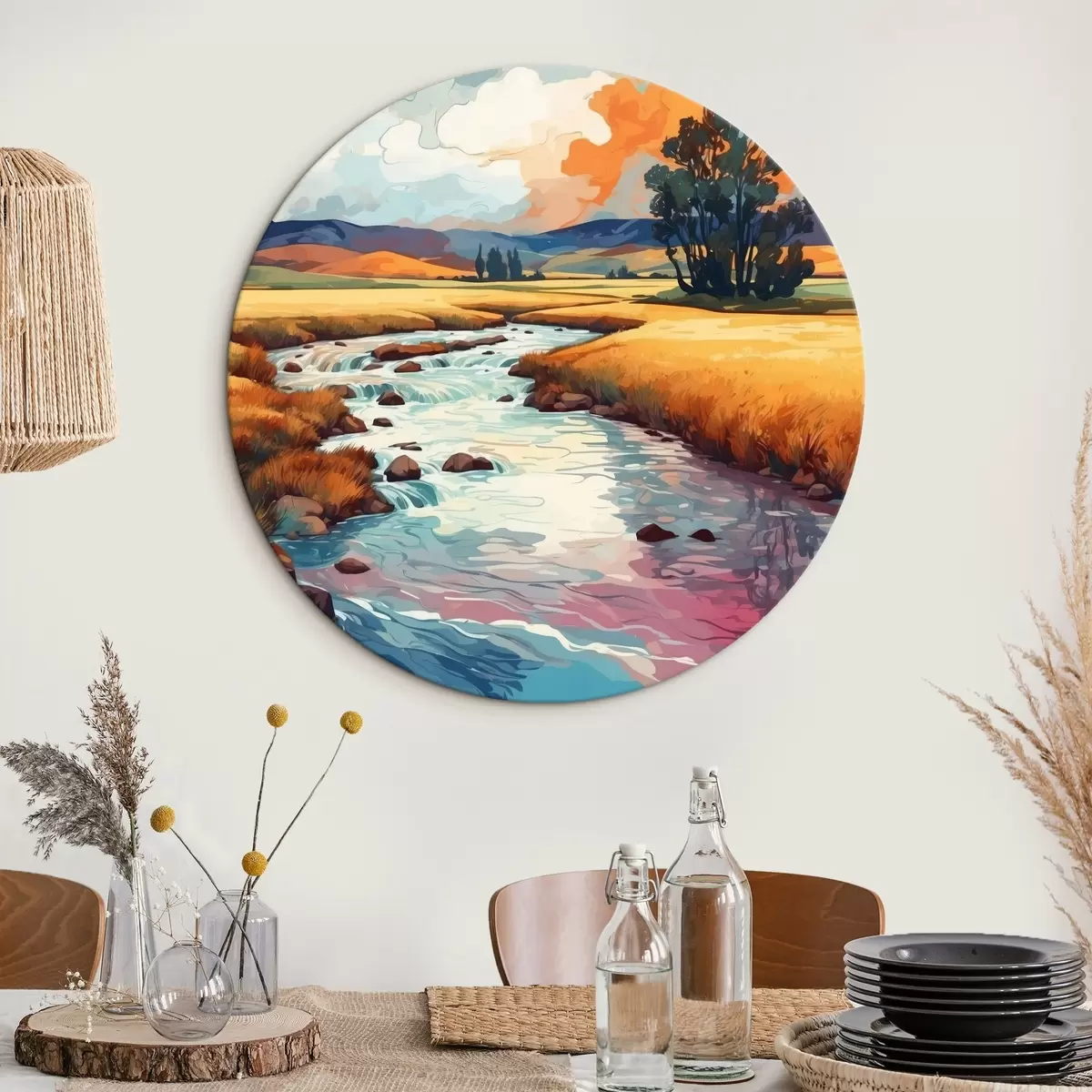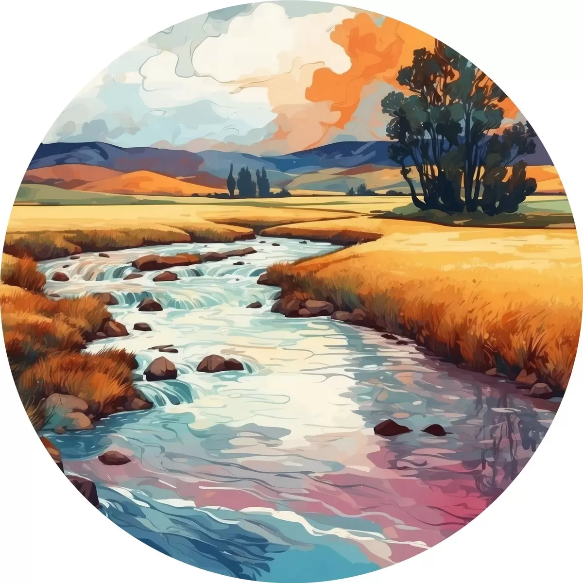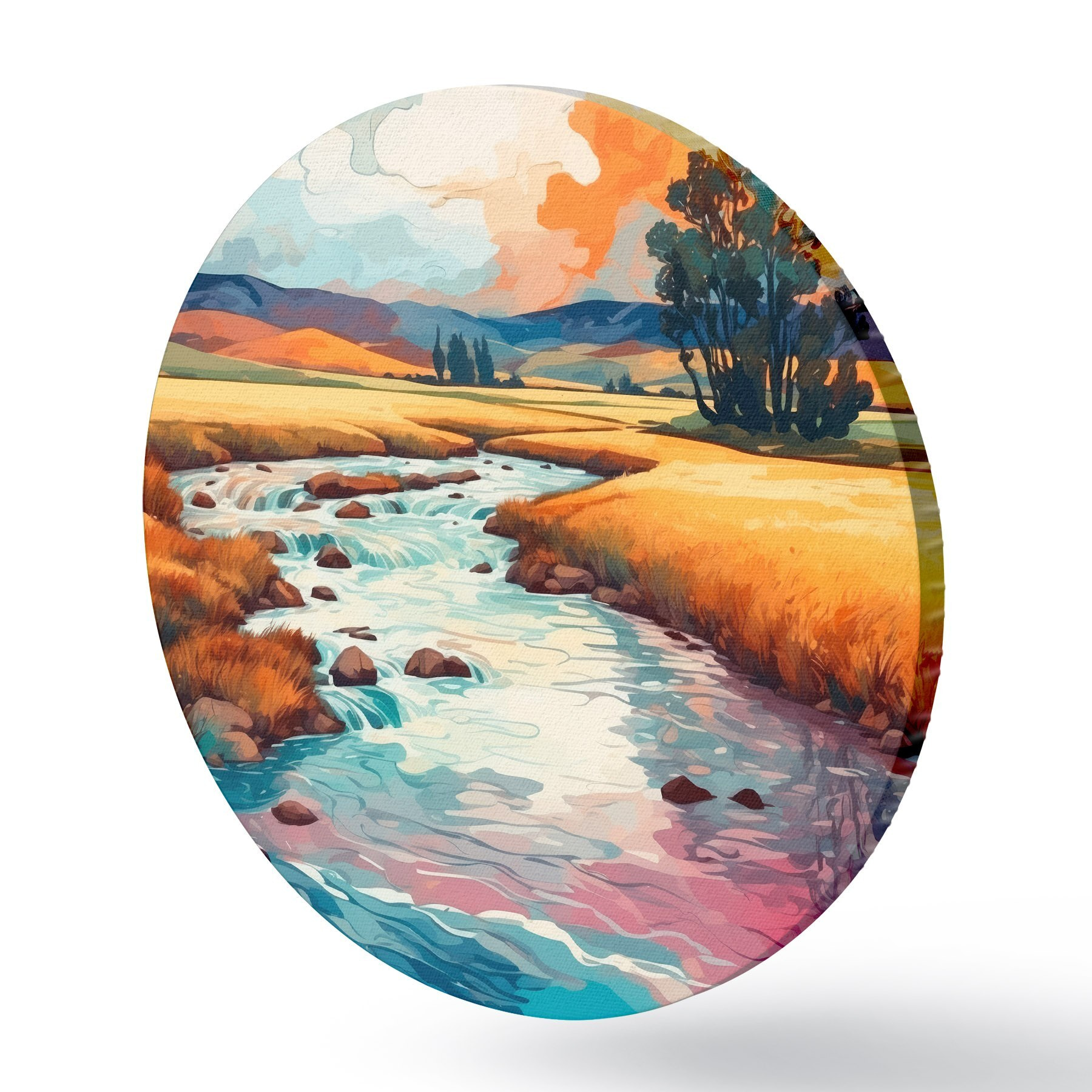 Quadri rotondi Ruscello nel campo nello stile della pittura ad acquerello r43110