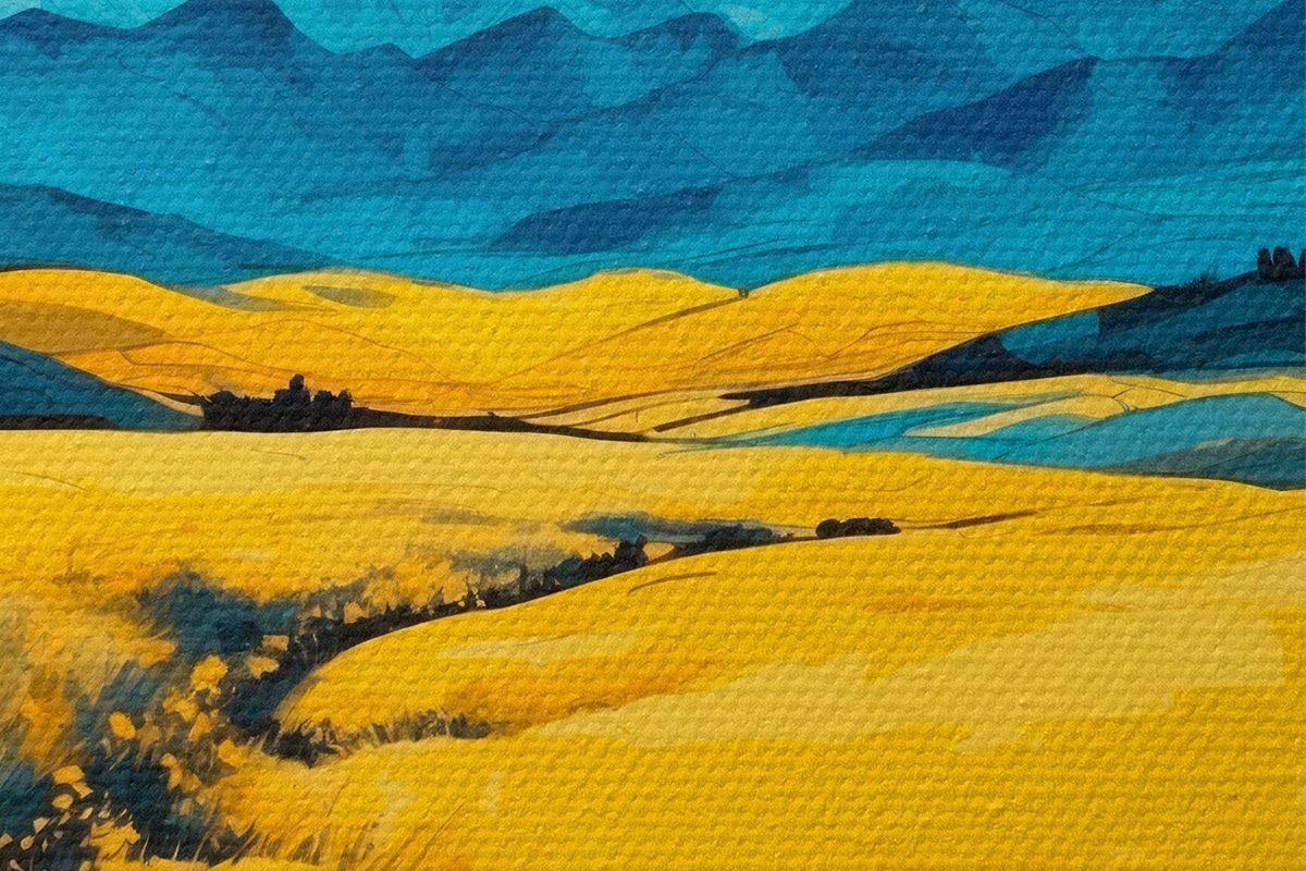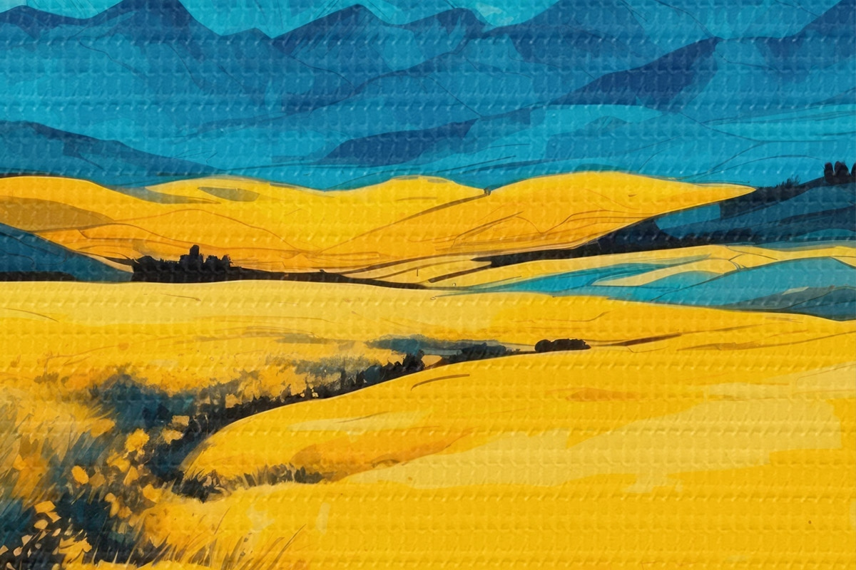 Immagine Campo giallo sullo sfondo delle montagne in stile pittura ad acquerello Nr r43117