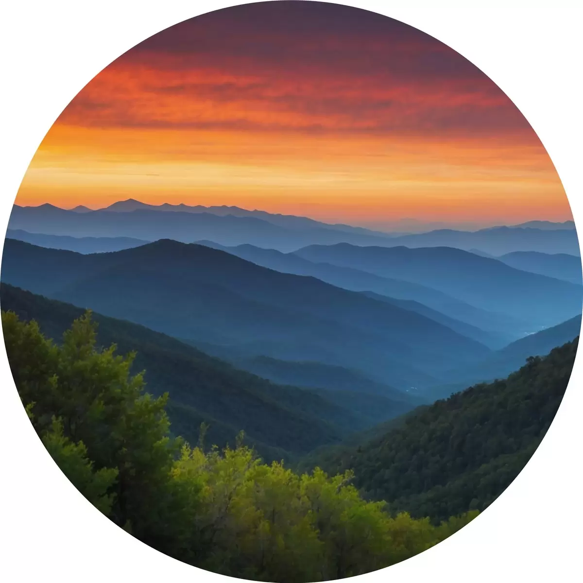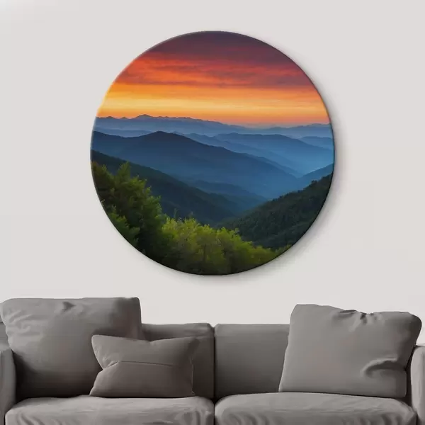 Quadri rotondi Vista dalle montagne all'alba r43119