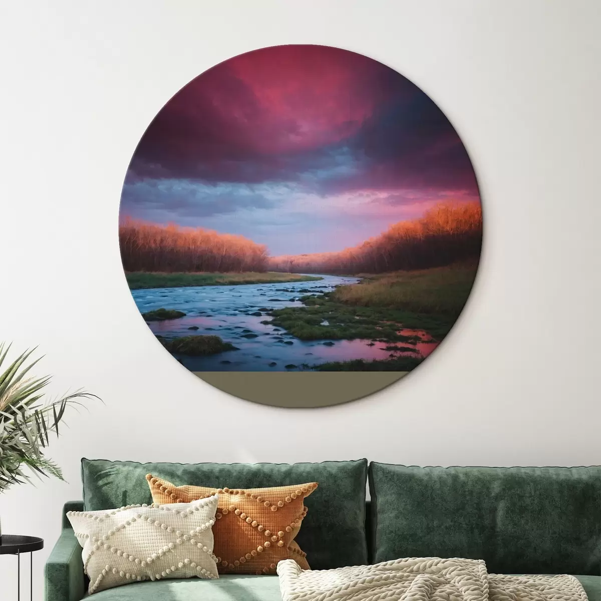 Quadri rotondi Ruscello nel campo sullo sfondo del cielo viola r43120
