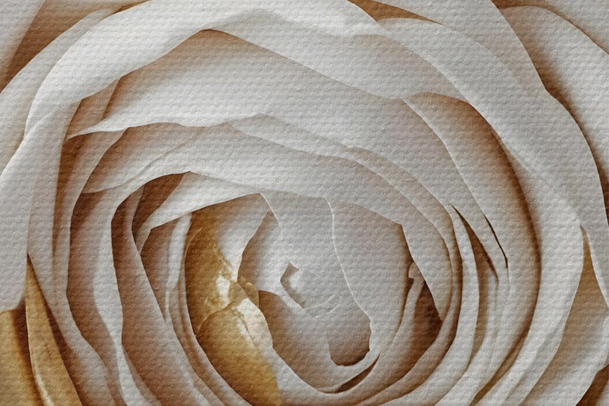 Immagine Una rosa decorativa minimalista bianca con accenti gialli, i petali sono stratificati e arricciati Nr r43160